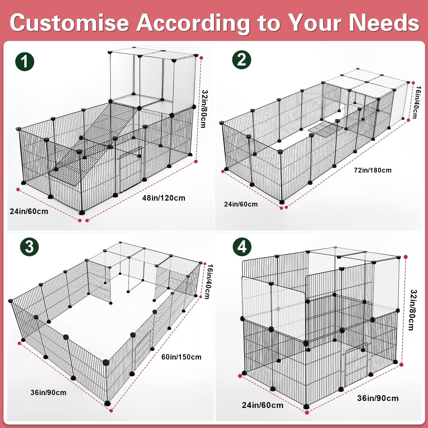 - 【Safety Small Pet Playpen】 - Our encrypted grids keep the animal safe and prevents injury. Unlike with the traditional pet playpen, the new updated guinea pig enclosure will not trap small animals. Rounded edges protect animals from injury, nylon ties reinforce the rabbit cages for added security.