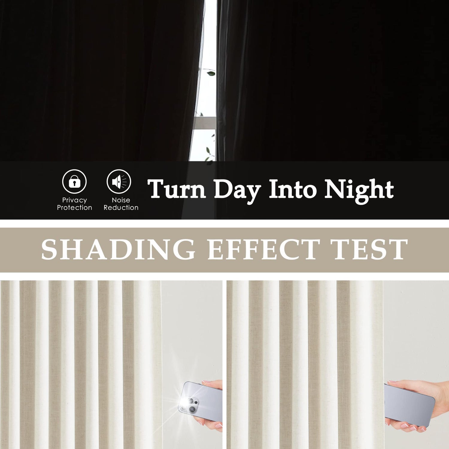 Vision Home Natural Pinch Pleated Full Blackout Curtains Linen Blended Room Darkening Window Curtains 108 inch for Living Room Bedroom Thermal Insulated Pinch Pleat Drapes with Hooks 40" Wx108 Lx2
