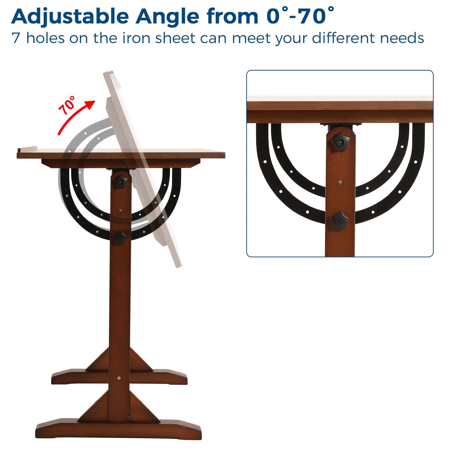 - [Adjustable Angle and Height] We know the importance of the perfect angle and height while creating art. Our drawing desk comes equipped with adjustable angle and height features, allowing you to easily customize the tilt and height of the drawing surface. Loosen the nuts on both sides together to adjust the height. Just insert the screws into the seven holes on the semi-circular iron sheet to adjust the angle. You can reduce strain on your neck and back and enhance your productivity.