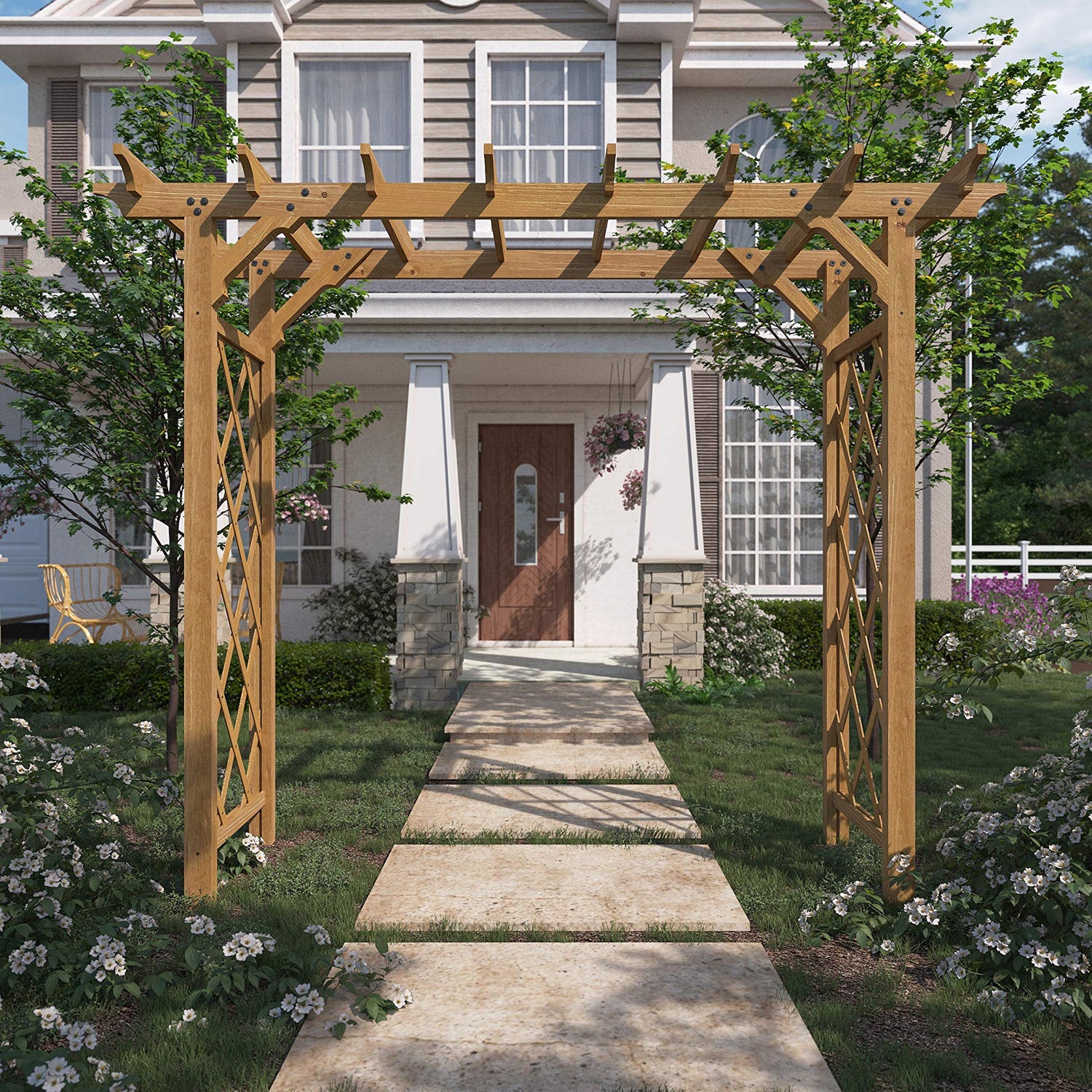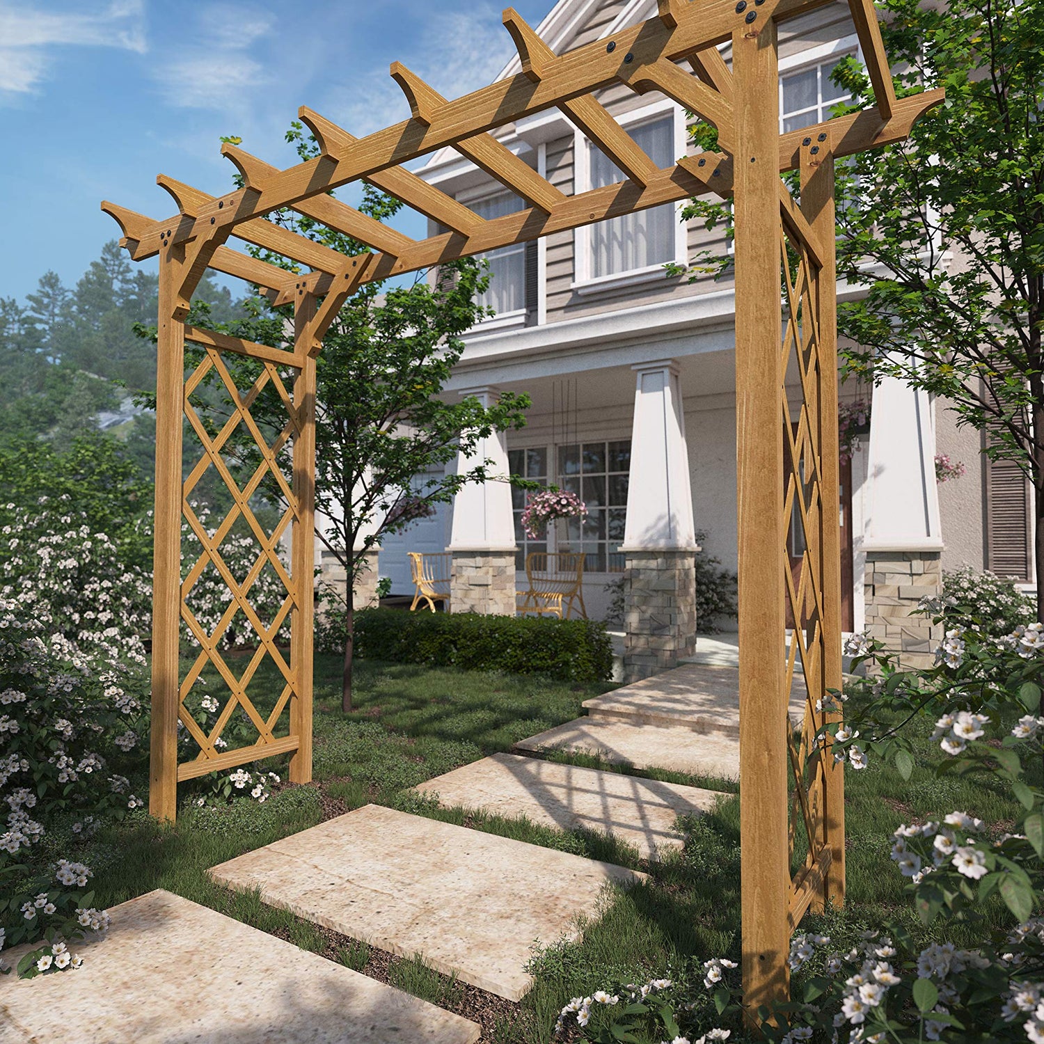 Vita Heartwood Grande Cedar Arbor, Golden Brown, FSC, Wood, 85 inch L x 26 inch W x 89 inch H, Opening Width 78 inches, Garden Décor Shade Arch, VA68898