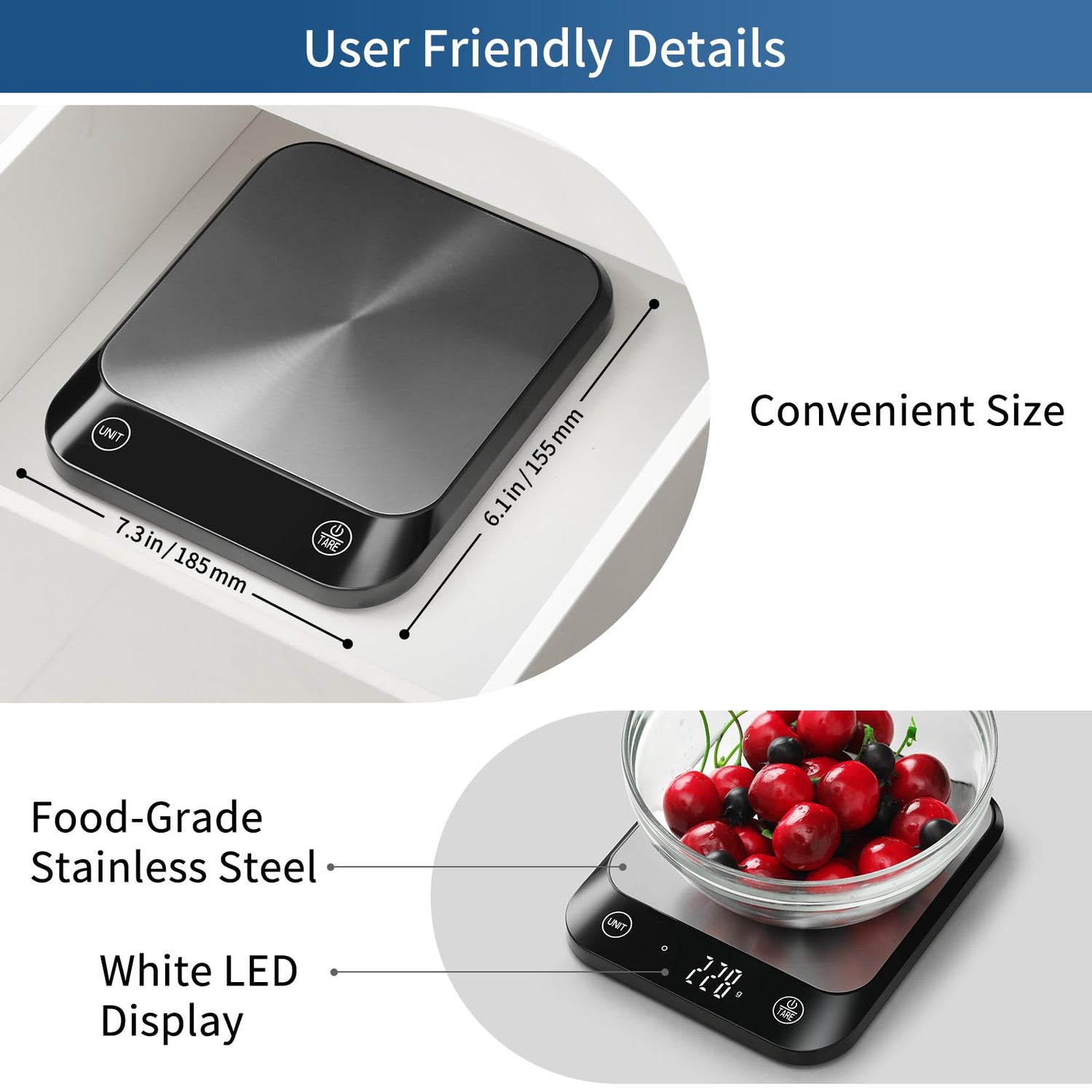 Vitafit 22lb Digital Food Kitchen Scale, High Accuracy Assured by Weighing Professional Factory Since 2001, Weight Loss, Baking and Cooking, LED Display, Batteries Included, Black