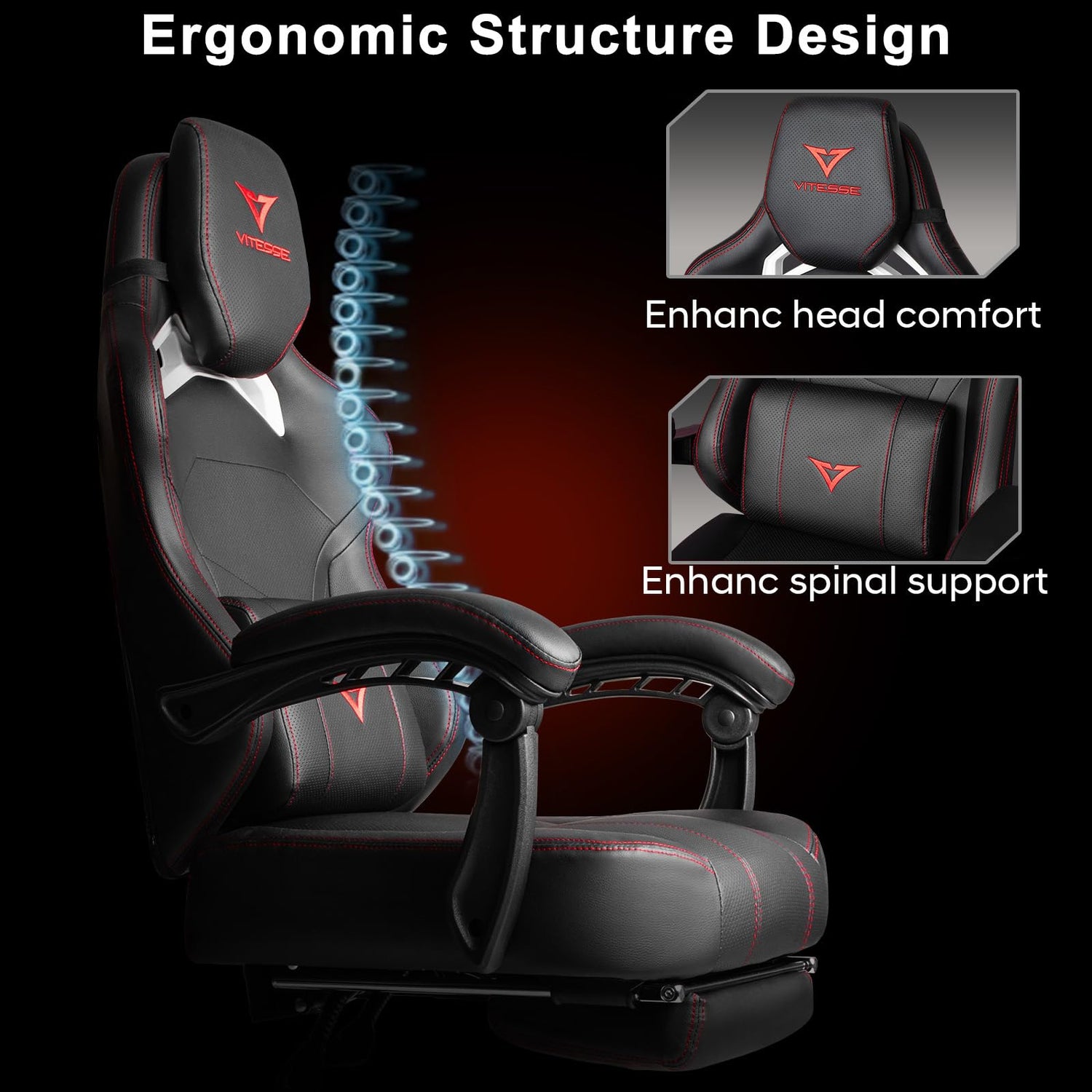 VITESSE Big and Tall Gaming Chair 400lb Weight Capacity with Footrest, Ergonomic Video Game Chair for Adults with Oversized Headrest and Lumbar Pillow, Computer Chair Gaming for Office (Black+Red)