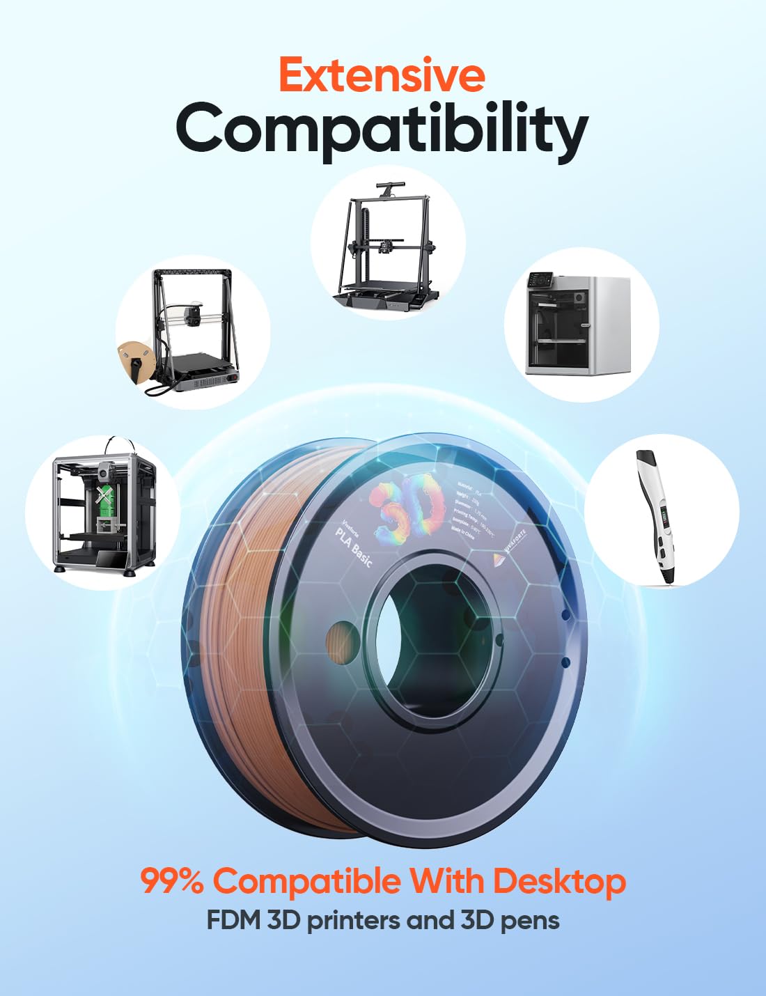 - 【Wide Compatibility】 Due to its small diameter tolerance and stable quality, this filament is compatible with 99% of 1.75mm Fused Deposition Modeling (FDM) 3D printers. Not compatible with AMS systems This product does not include a chip and is designed as a universal filament. If you are using an AMS (Automated Material System), you can resolve this by: Rewinding the filament onto a compatible AMS spool. Using an external feeder.