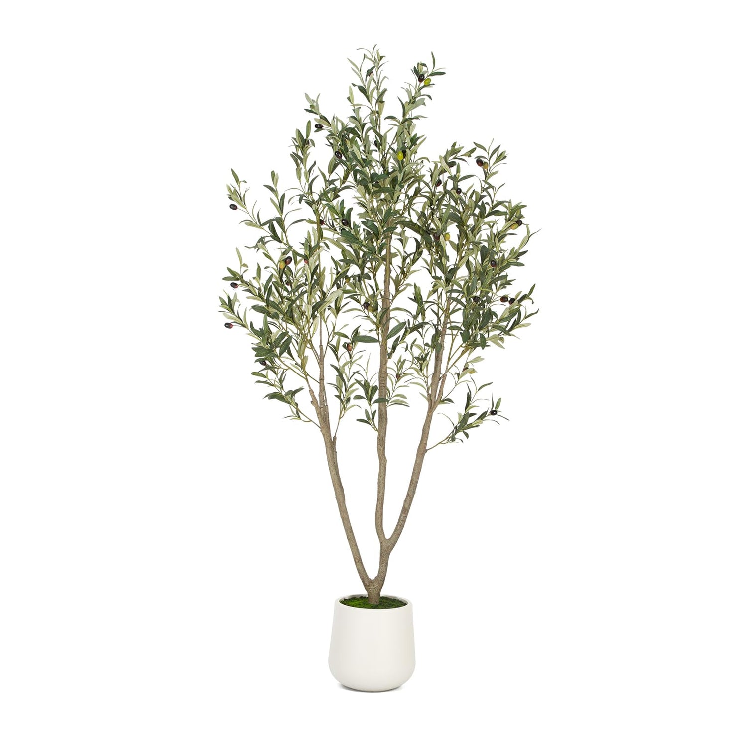 VIVATREES Olive Trees Artificial Indoor, 6FT Tall Faux Olive Tree with White Tall Planter, Artificial Plants with Natural Wood Trunk and Lifelike Fruits for Home Office Decor
