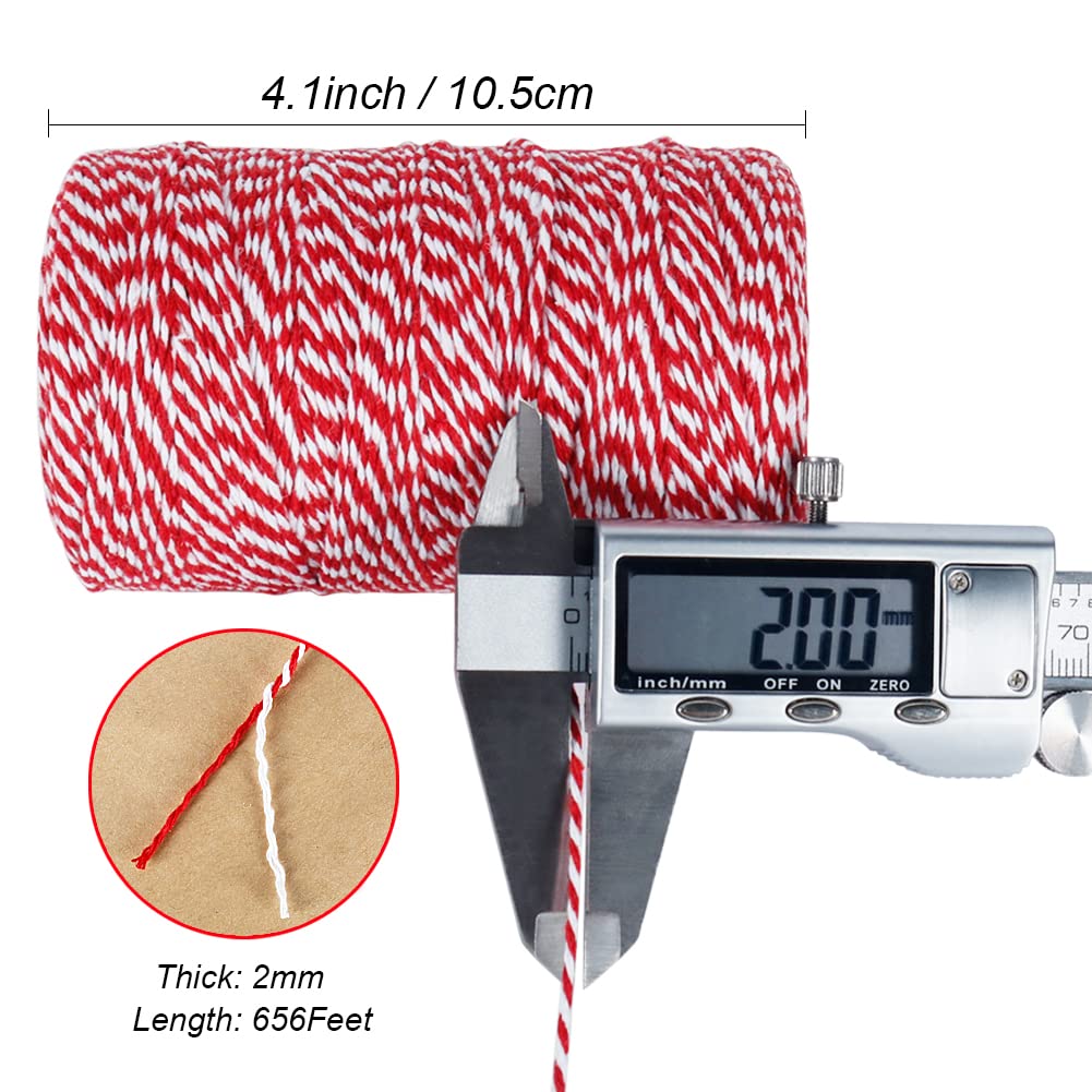 Vivifying Red and White Twine, 656 Feet 2mm Cotton Bakers Twine String for Gift Wrapping, Baking, Butchers, DIY Crafts, Tying Cake and Pastry Boxes