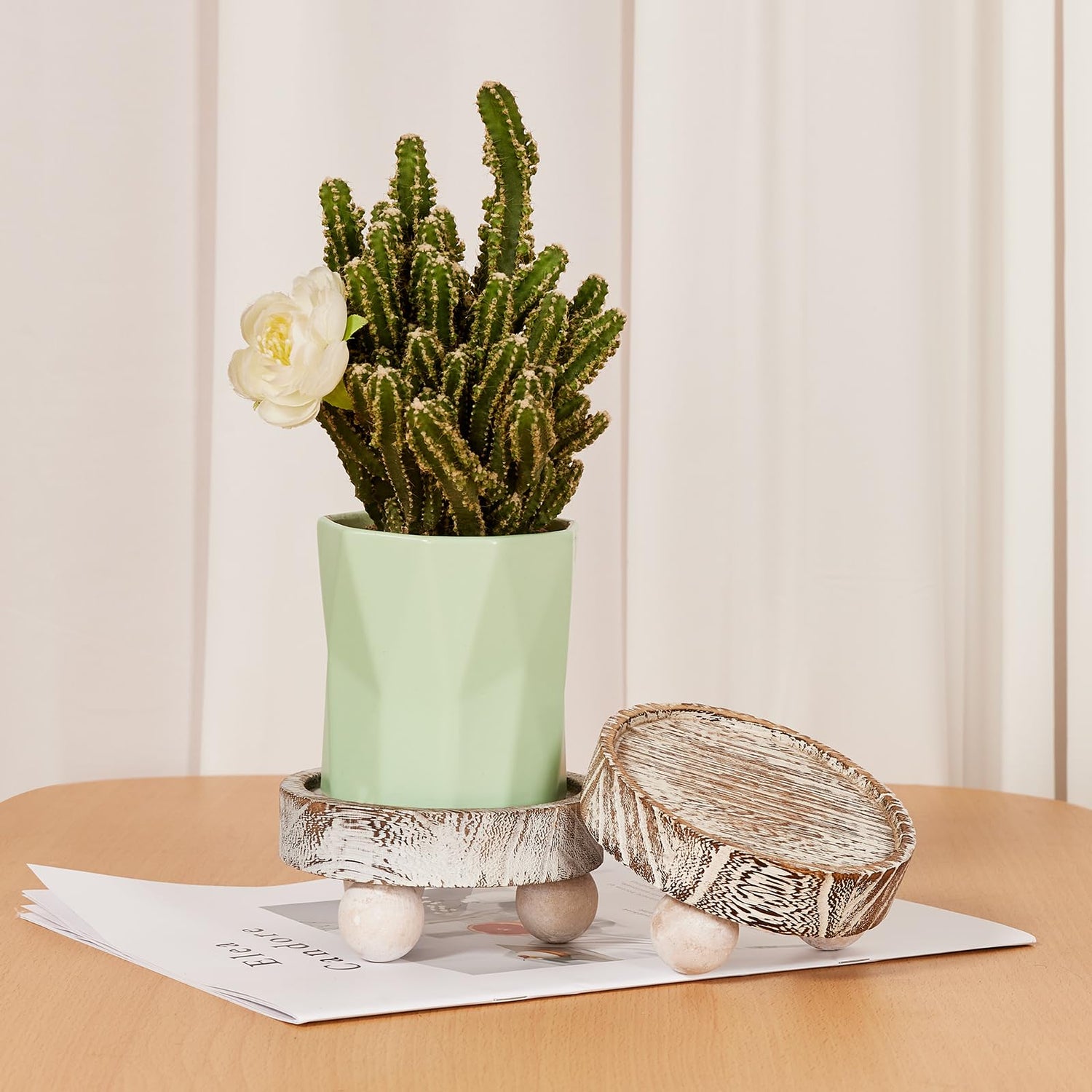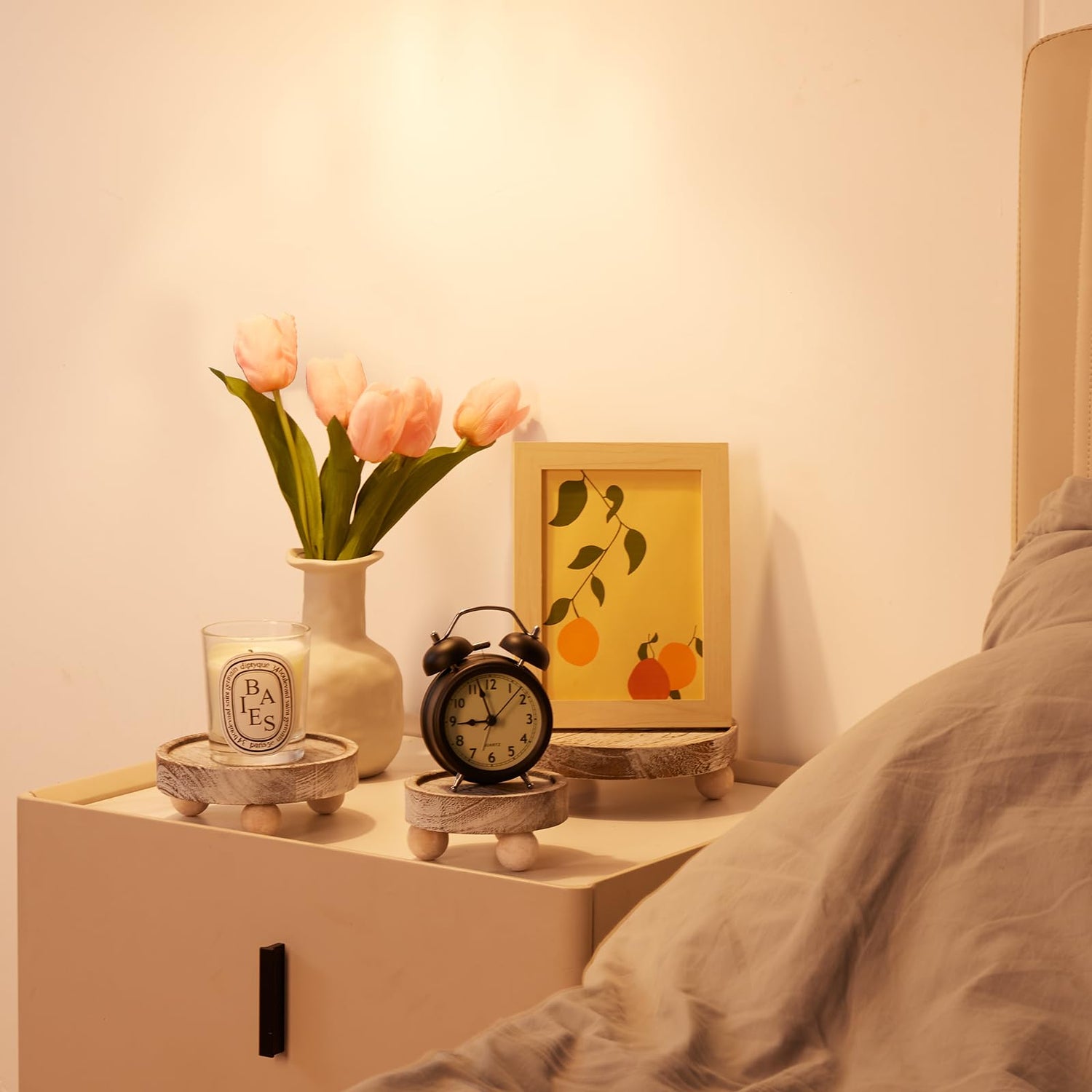 - 【Multiple Uses】-Each round wooden column has 3 spherical feet with better stability, the decorative wood riser with raised edges to prevent items from slipping. Our farmhouse decorative risers can be used to hold tiered decorations, candles, plants, cups, vases, cupcakes, rings, watches, necklaces, bracelets, earrings, glasses, or cosmetics, figurines, etc.