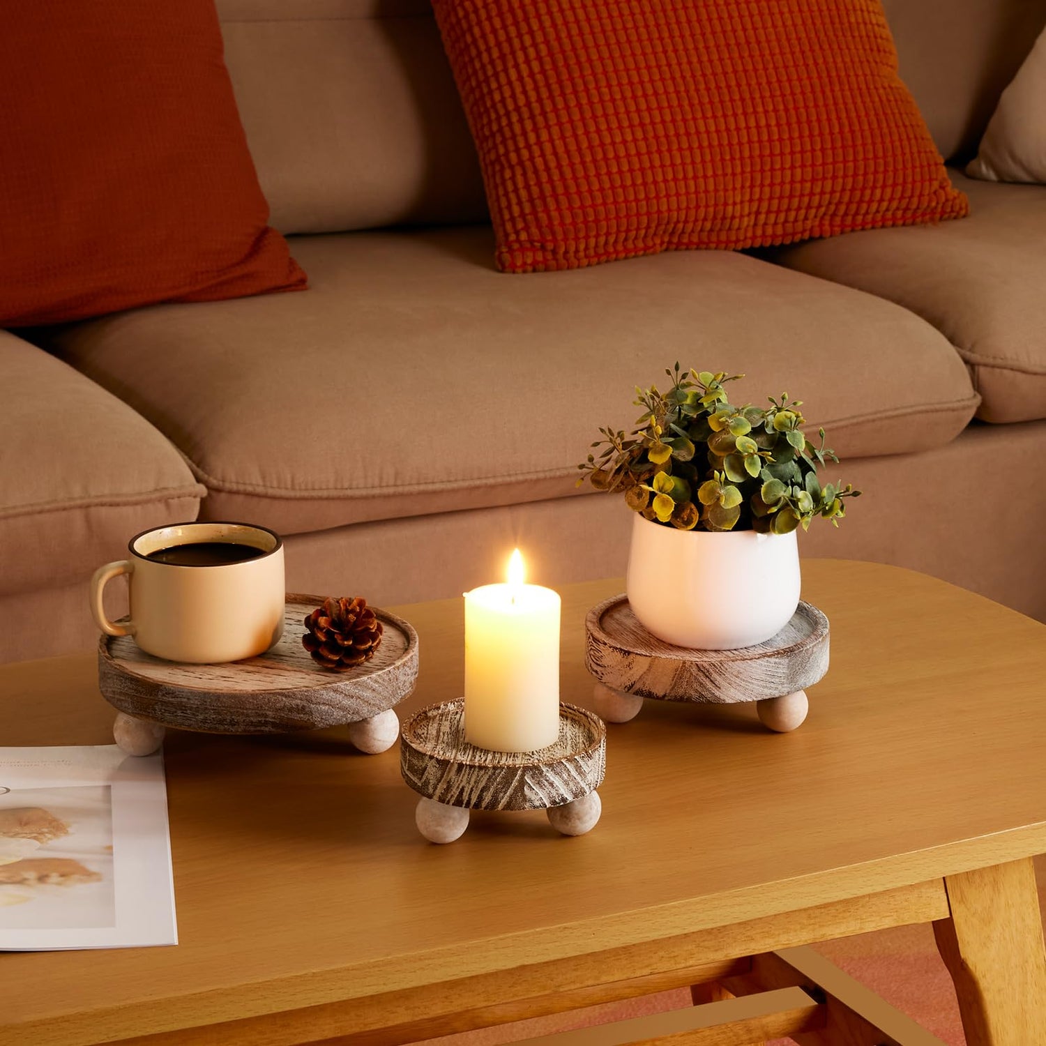 VIVIRBIEN 3PCS Wood Risers for Decor Mini Wooden Stool Display Stand with Removable Feet Farmhouse Rustic Decor Risers for Display Decorative Wood Pedestal Stand for Candles, Plants, Cups
