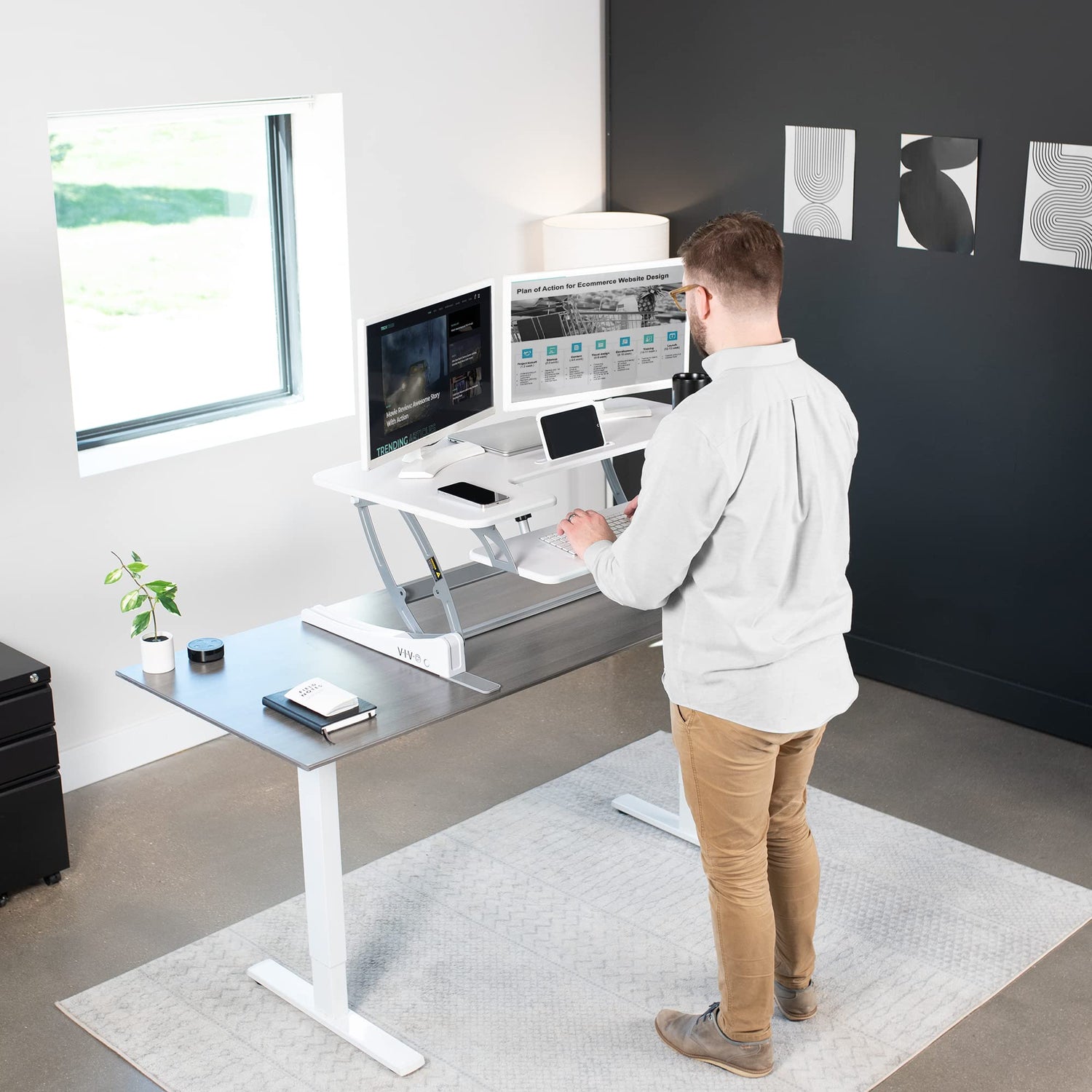 VIVO 42 inch Electric Height Adjustable Stand Up Desk Converter, VE Series, Sit to Stand Tabletop Dual Monitor Riser with USB Port, White, DESK-V000VLEW
