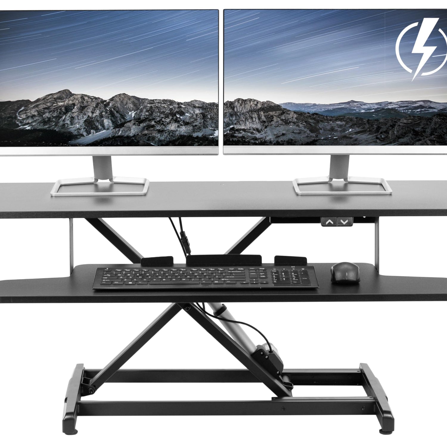 VIVO 42 inch Electric Motor Desk Converter, Height Adjustable Riser, Sit to Stand Dual Monitor and Laptop Workstation with Wide Keyboard Tray, Black, DESK-VE42B