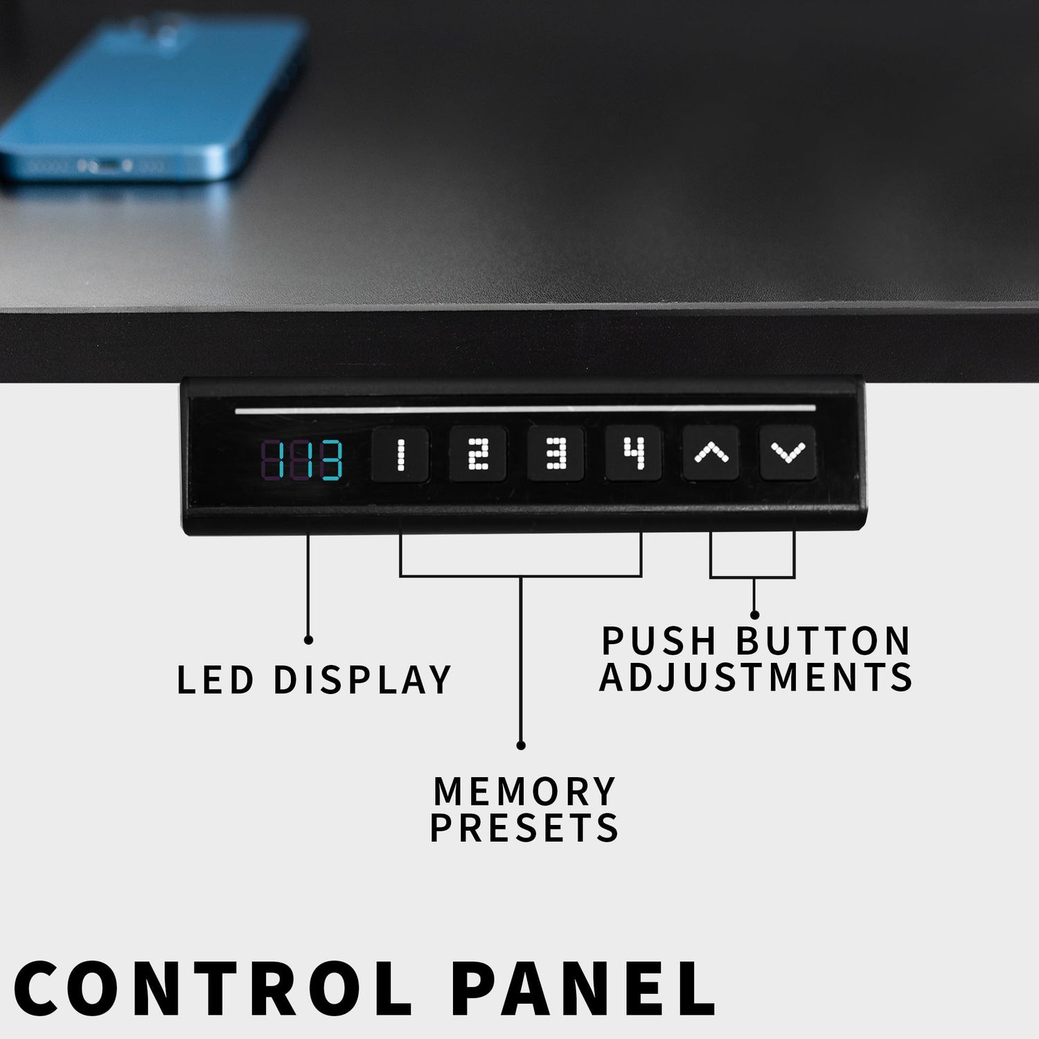 - Powerful Electric Motor - The frame uses a single motor lift system with a height range of 30.4” to 48.5” for the main desktop. The simple push-button controller features 4 memory settings to save your desired heights.