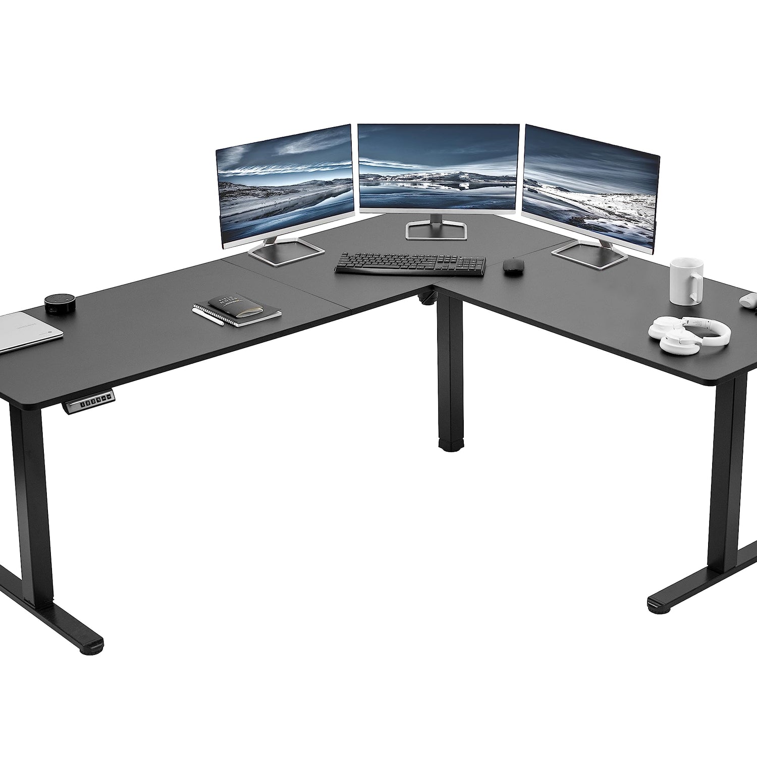 VIVO Electric Corner L-Shaped 75 x 63 inch Standing Desk, Height Adjustable, Memory Controller, Black Top Black Frame, DESK-E3CTB-75