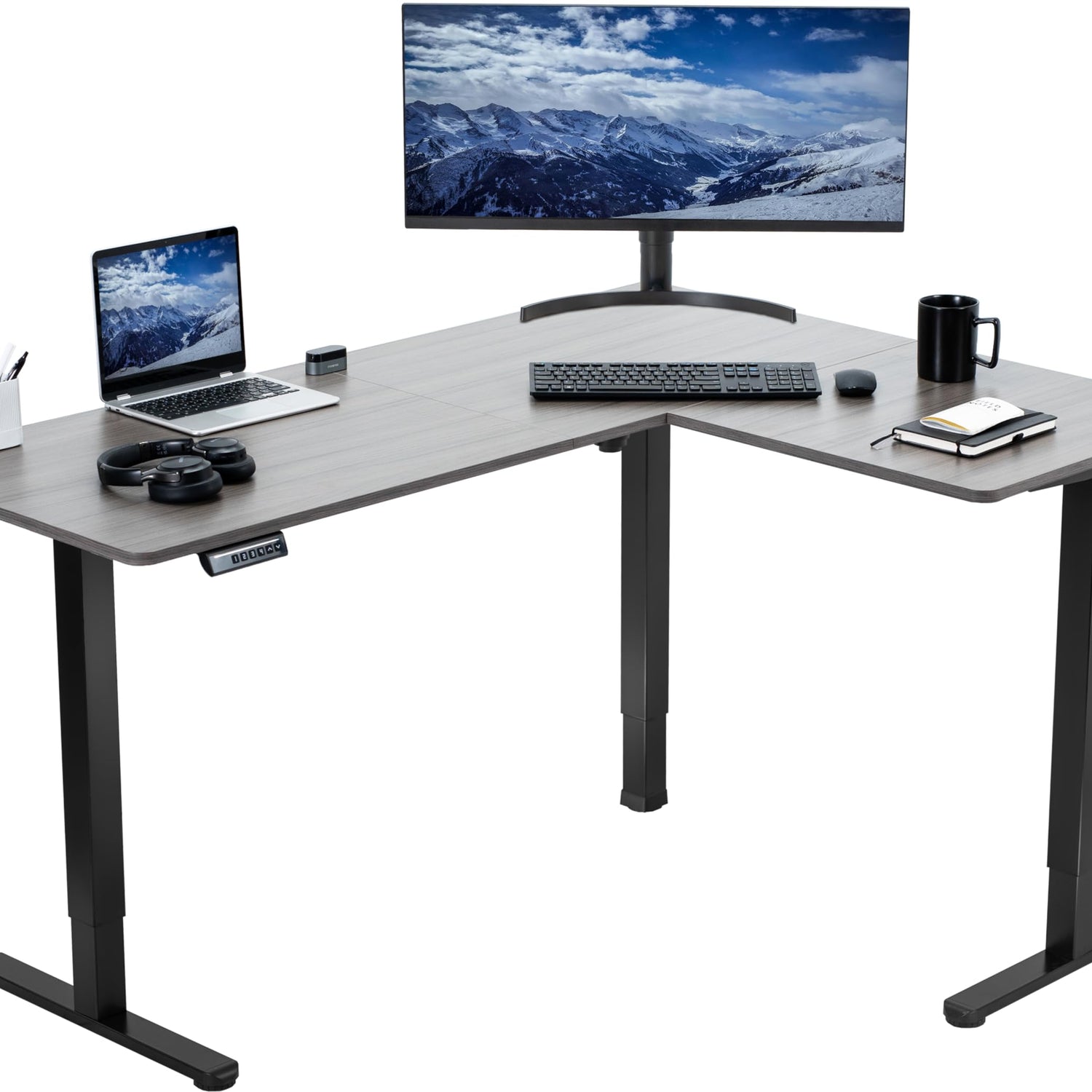VIVO Electric Height Adjustable 63 x 47 inch Corner Stand Up Desk, Gray Table Top, Black Frame, L-Shaped Standing Workstation, 3CT Series, DESK-E3CTG-47