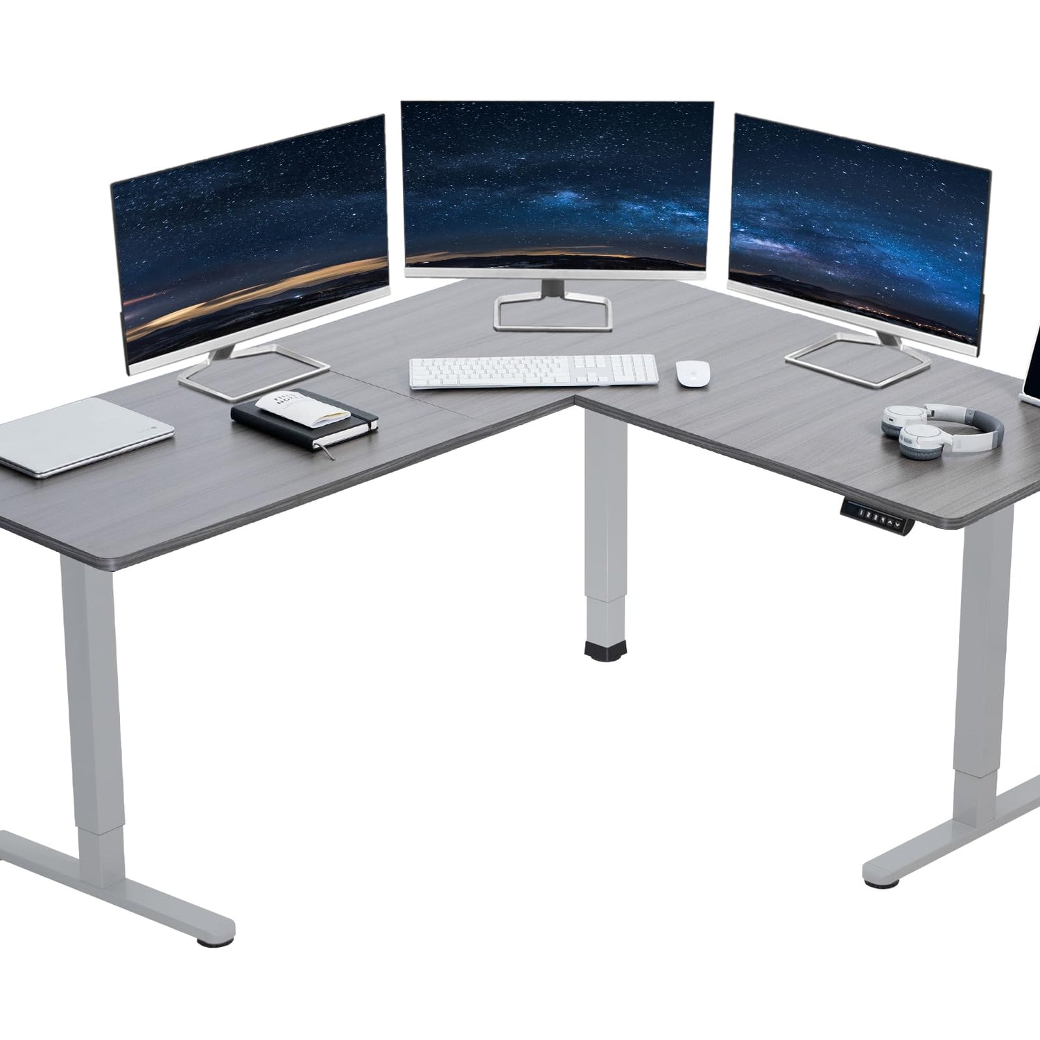 VIVO Electric Height Adjustable 63 x 55 inch Corner Stand Up Desk, Gray Table Top, Gray Frame, L-Shaped Standing Workstation, 3CT Series, DESK-E3CTGG