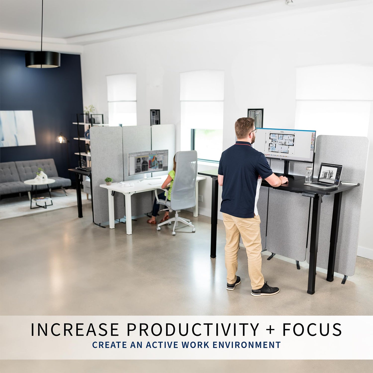 - Create Instant Active Standing - Go from sitting to standing in one smooth motion with this extra sturdy 4-legged active workstation providing comfortable viewing angles and customized user heights.