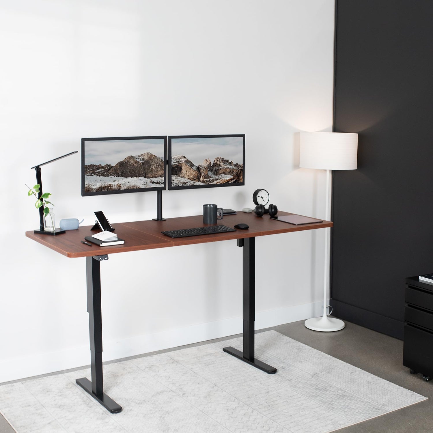 VIVO Electric Height Adjustable 71 x 30 inch Stand Up Desk, Active Workstation with Dark Walnut Table Top, Black Frame, 2 Button Controller, DESK-KIT-0B7D