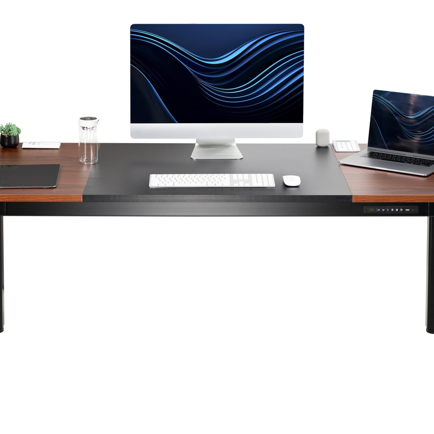 - Spacious 3-Piece 71" Top - The 70.9” x 29.5” table provides a large surface for a variety of monitor and laptop setups along with important work materials, supplies, and decor. The 2-toned color creates an aesthetically pleasing design for the home and office.