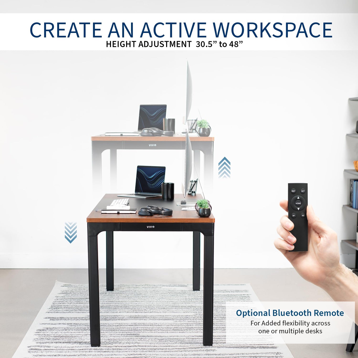 - Create Instant Active Standing - Go from sitting to standing in one smooth motion with this premium active workstation providing comfortable viewing angles and customized user heights. Includes a remote control for maximum convenience in adjusting your desk to the desired setting.