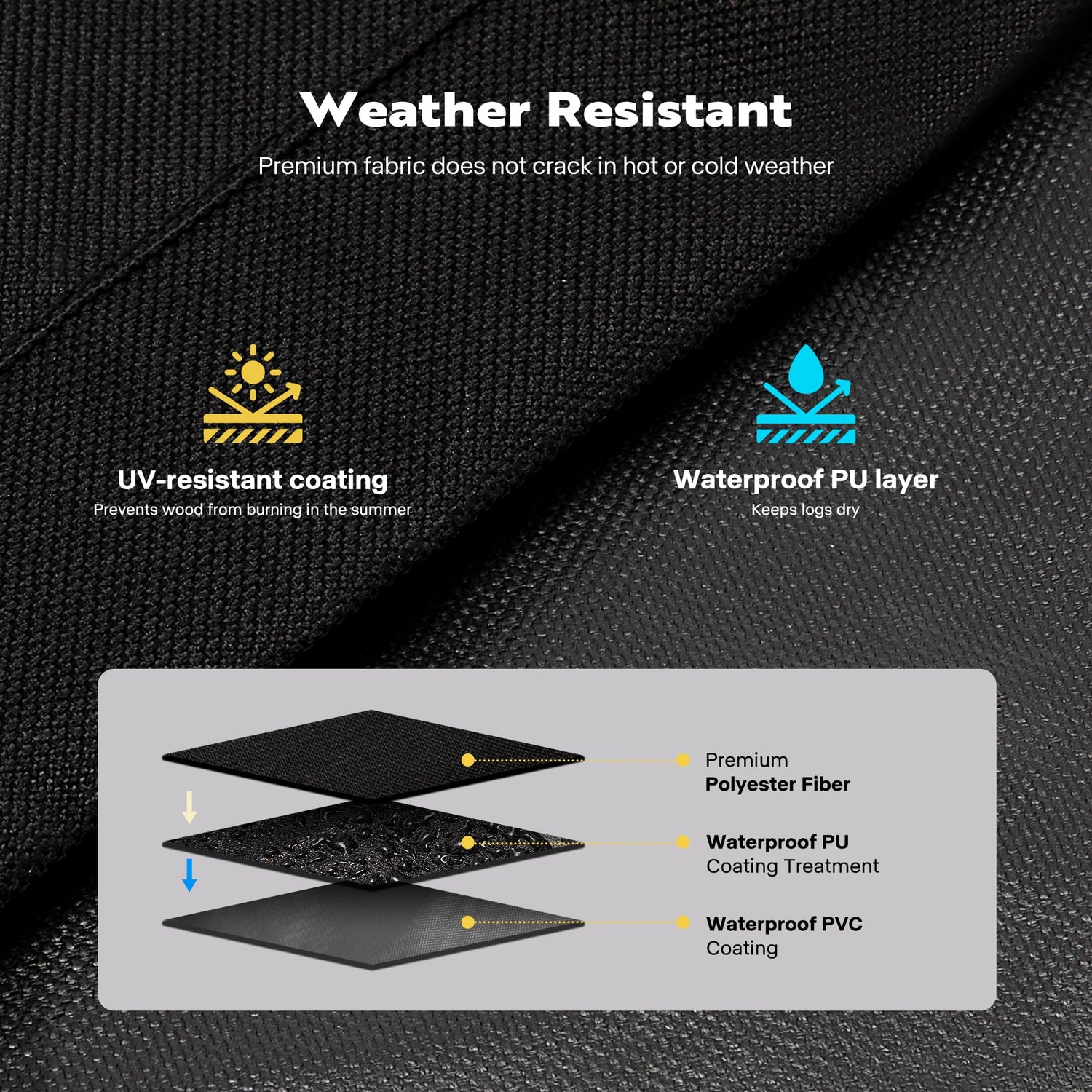 - WEATHER RESISTANT- Premium fabric does not crack in hot or cold weather; A protective coating prevents wood from burning in the summer; The PU and PVC layers keep logs dry
