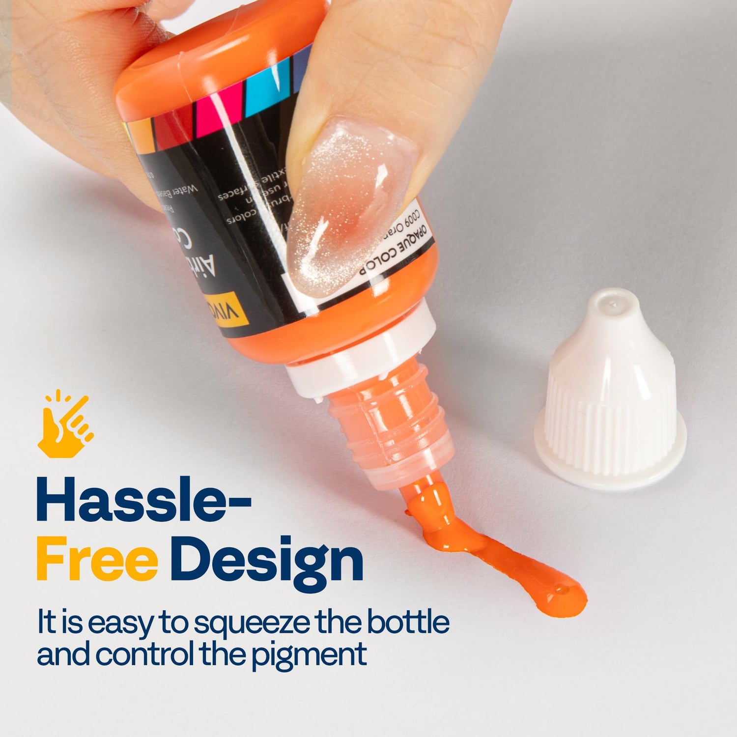 - USAGE TIPS: The bottle features color-coded labels for quick identification; Shake well before use; Compatible with various airbrush compressors and airbrushes; For compressors with a flow rate over 18 L/min, the paint can be sprayed directly; For lower-flow compressors or airbrushes with diameters less than 0.3 mm, dilute with 5-15% water to optimize performance; Keep the nozzle clean before and after use, and clean the airbrush immediately after use; Securely tighten the bottle cap to keep the paint fresh and extend the product's lifespan