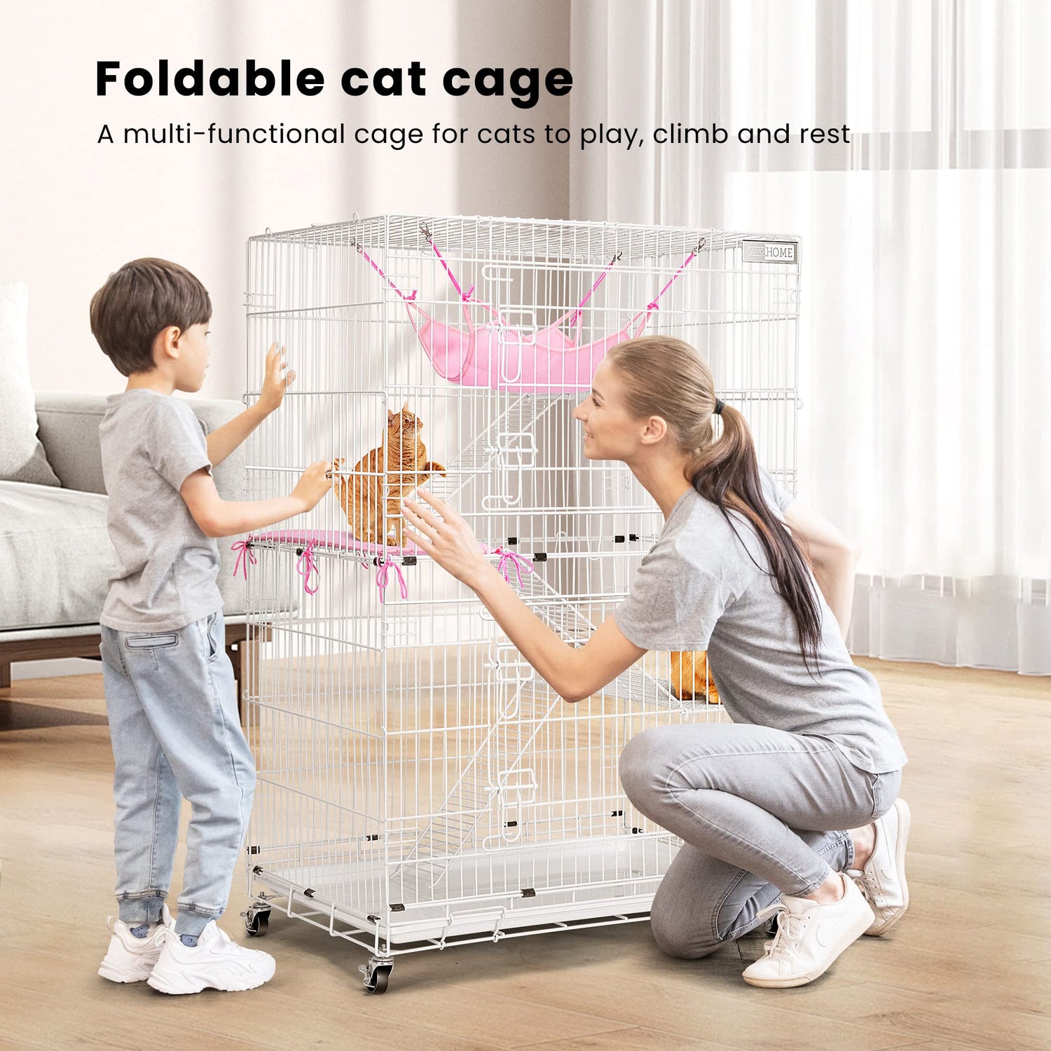 - CREATIVE DESIGN - Apart from 4 tiers and 3 ramps, this VIVOHOME foldable cat cage is also equipped with a hanging hammock and a soft mat, just like an amusement park for the lovely cats; It is large enough for 1-3 cats playing together; Dimensions: 32”(L) x 22”(W) x 49"(H)