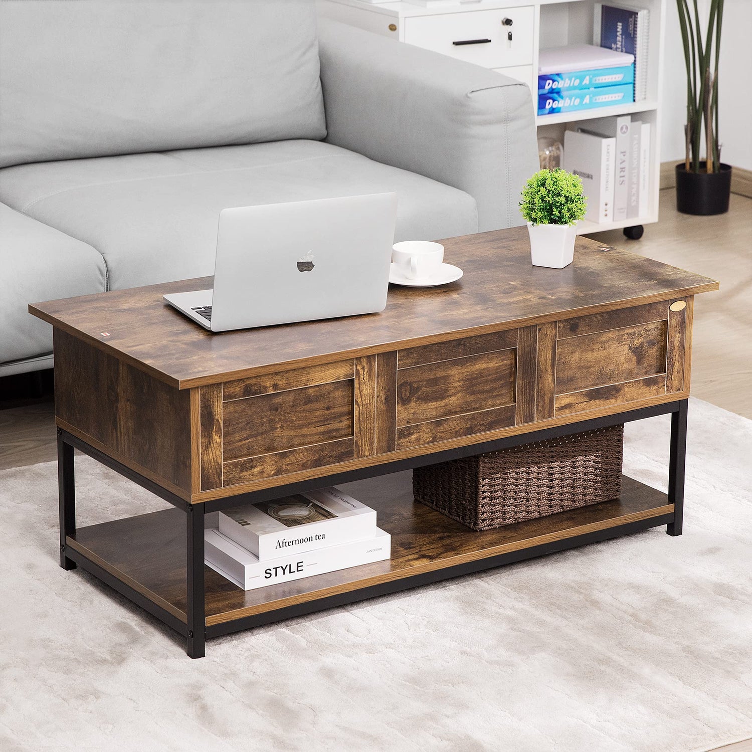 - AMPLE STORAGE SPACE - The lift up table comes with 3 hidden compartments and 1 open storage shelf, offering generous storage space to meet your daily needs; You can keep magazines, laptops, remotes, keys, and other often-used items well organized