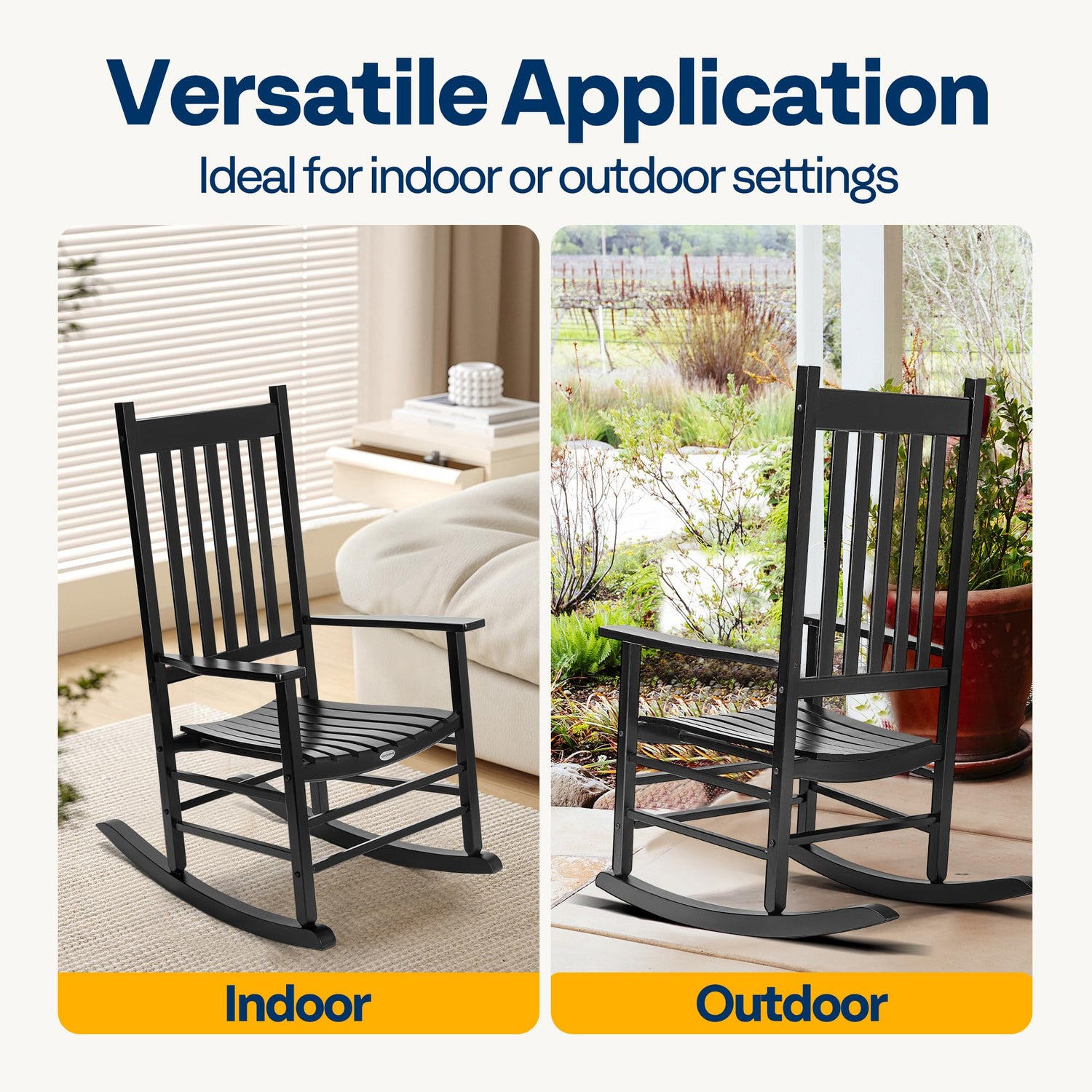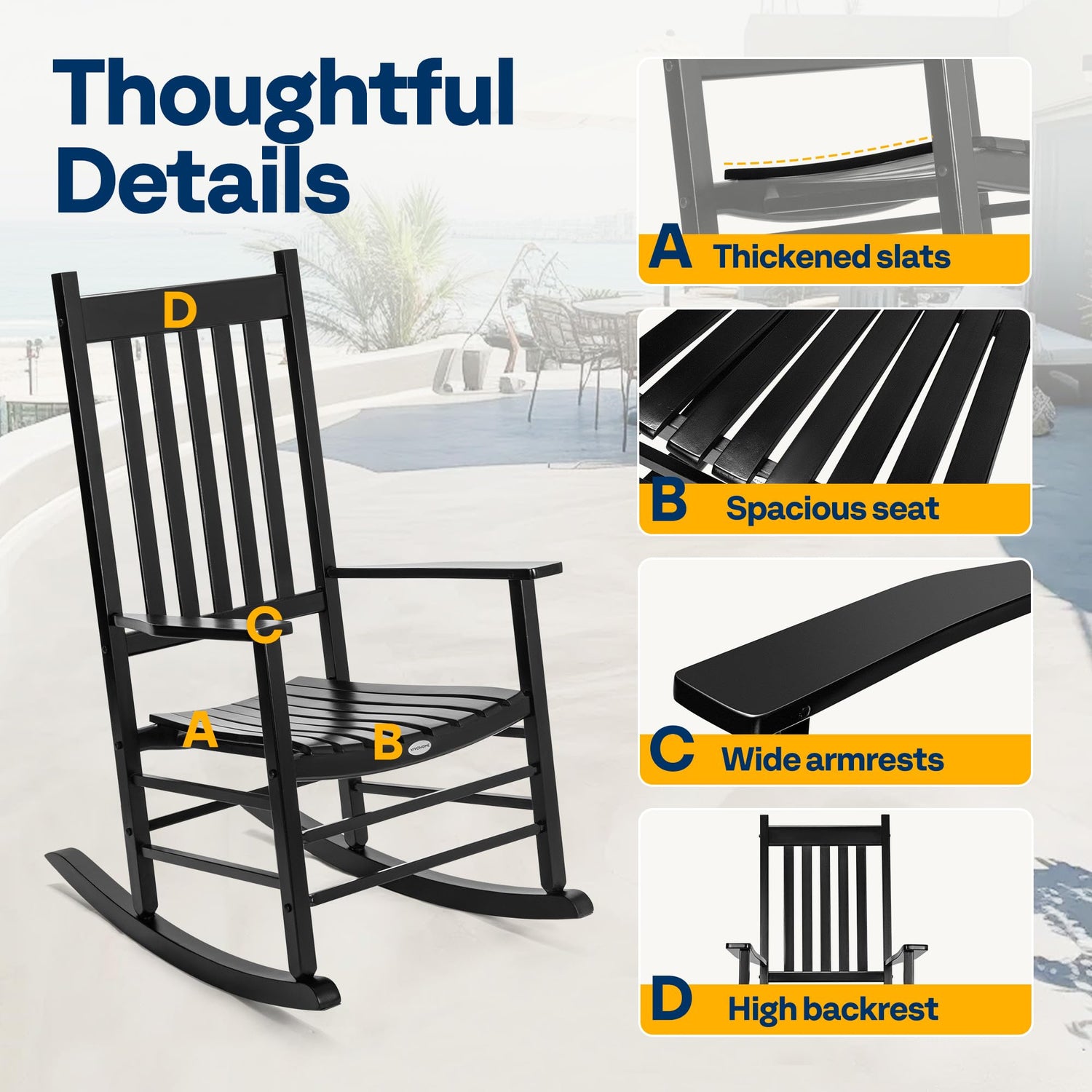 VIVOHOME Oversized Wooden Rocking Chair with Anti-Slip Strips for Noise Reduction, Suitable for Indoor, Porch, Garden, Black