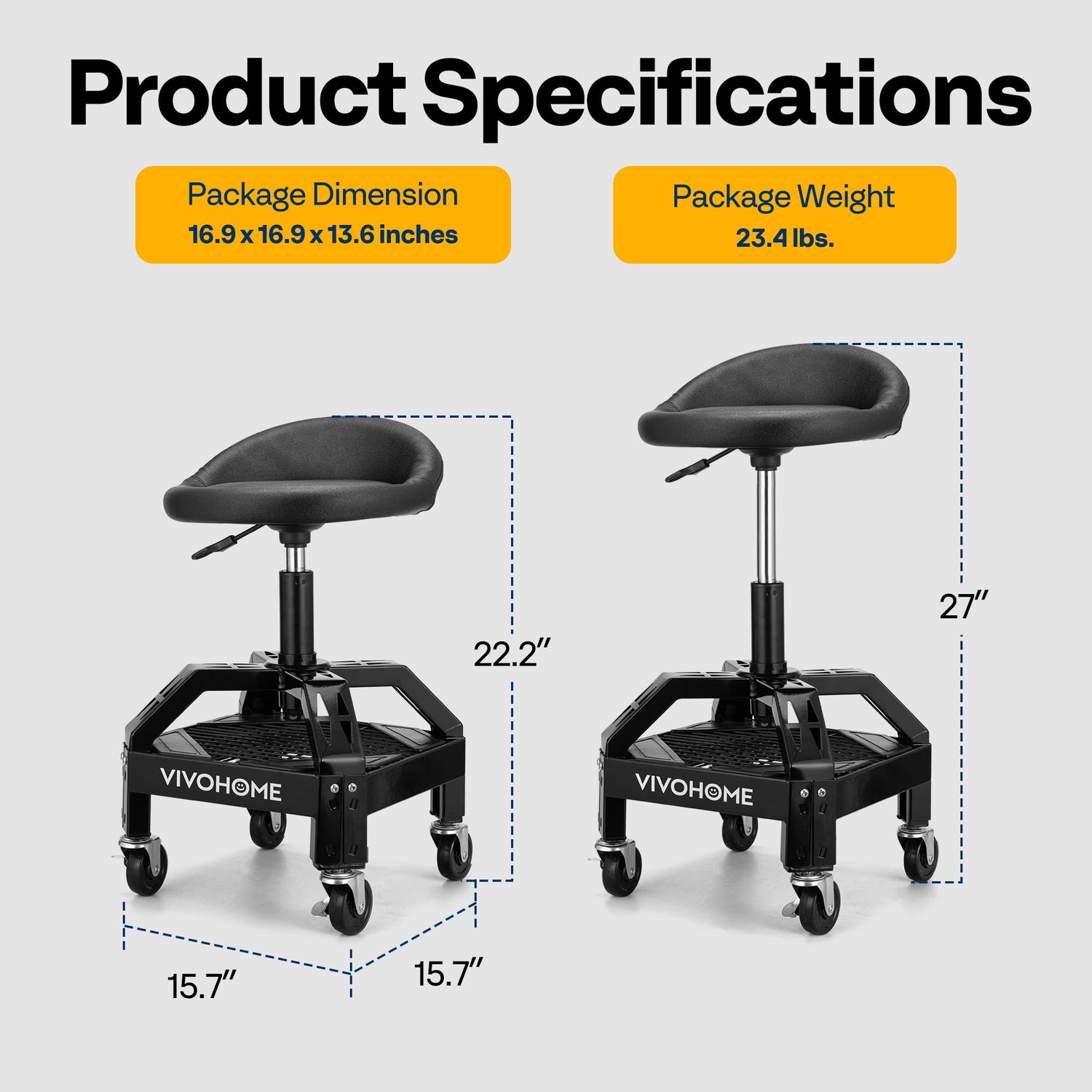 - ADJUSTABLE HEIGHT & 360°SWIVEL - The convenient height adjustment feature from 22.2 to 27 inches ensures optimal positioning for various tasks and users; Smooth-rolling casters allow users to move effortlessly in the garage or workshop, enhancing productivity; The 360° swivel design of the seat facilitates easy operation, allowing users to work from different angles