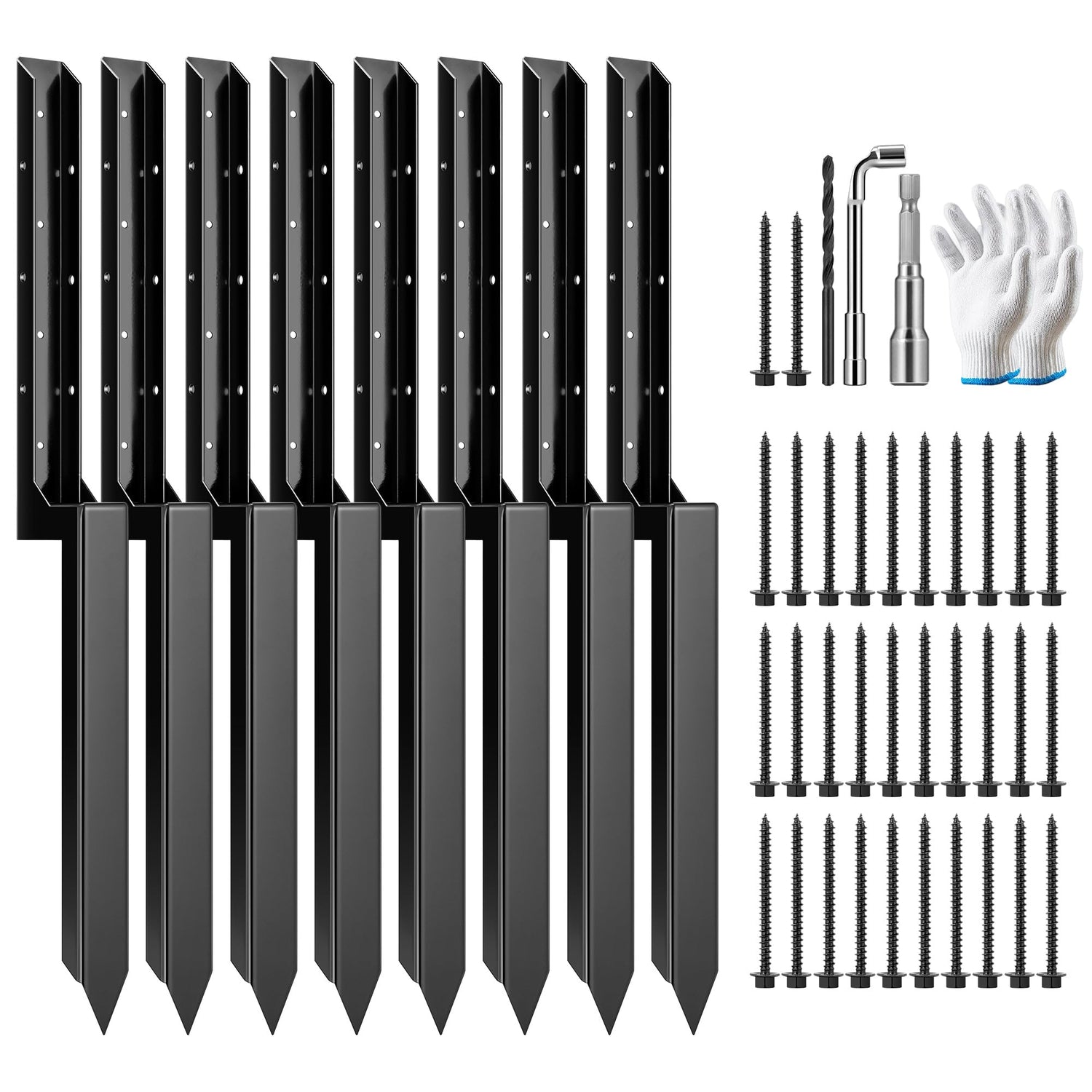 VIVOSUN Fence Post Repair Kit, Heavy-Duty Ground Spike with Gloves for Repairing Tilted or Broken Wood Posts (8 Pack, Black)