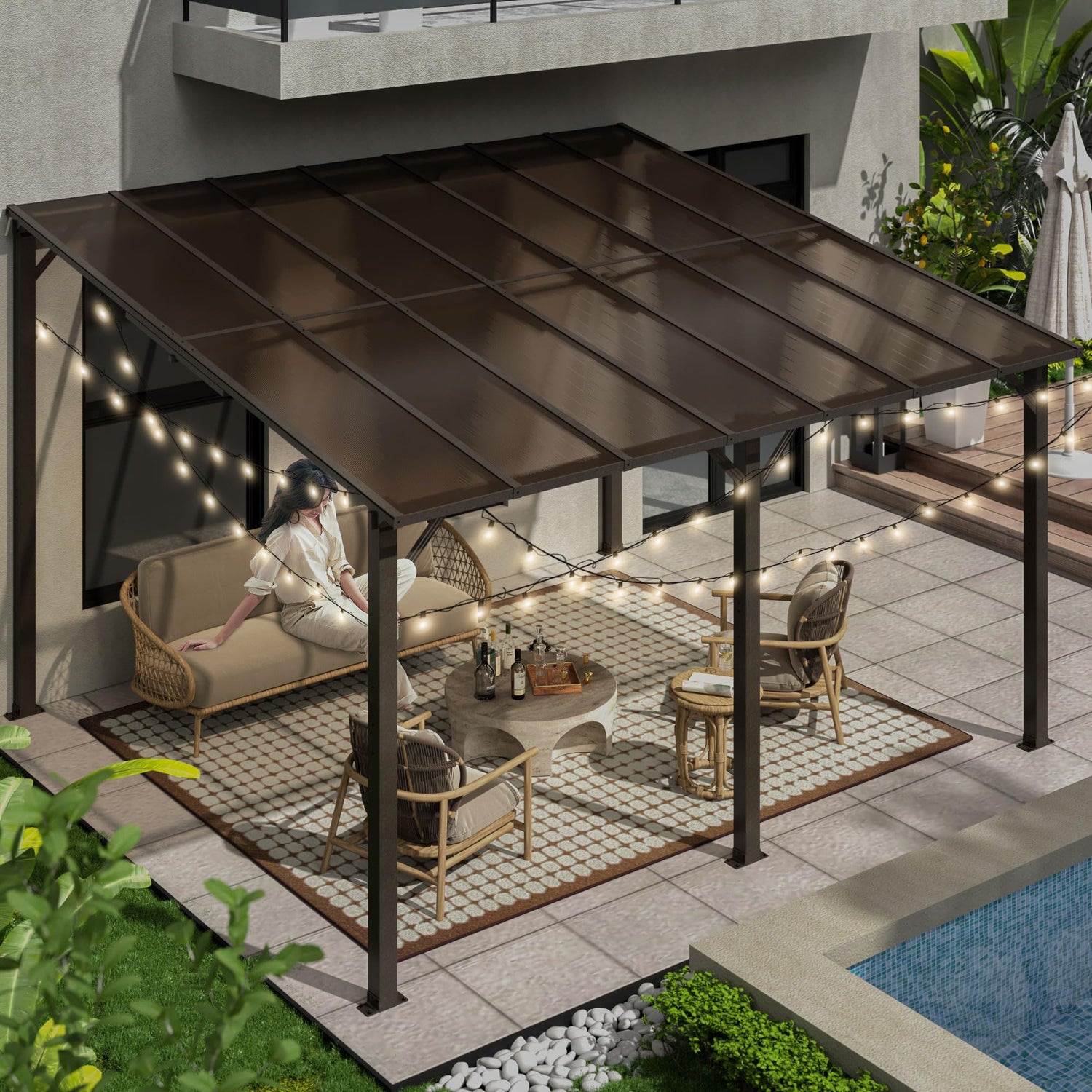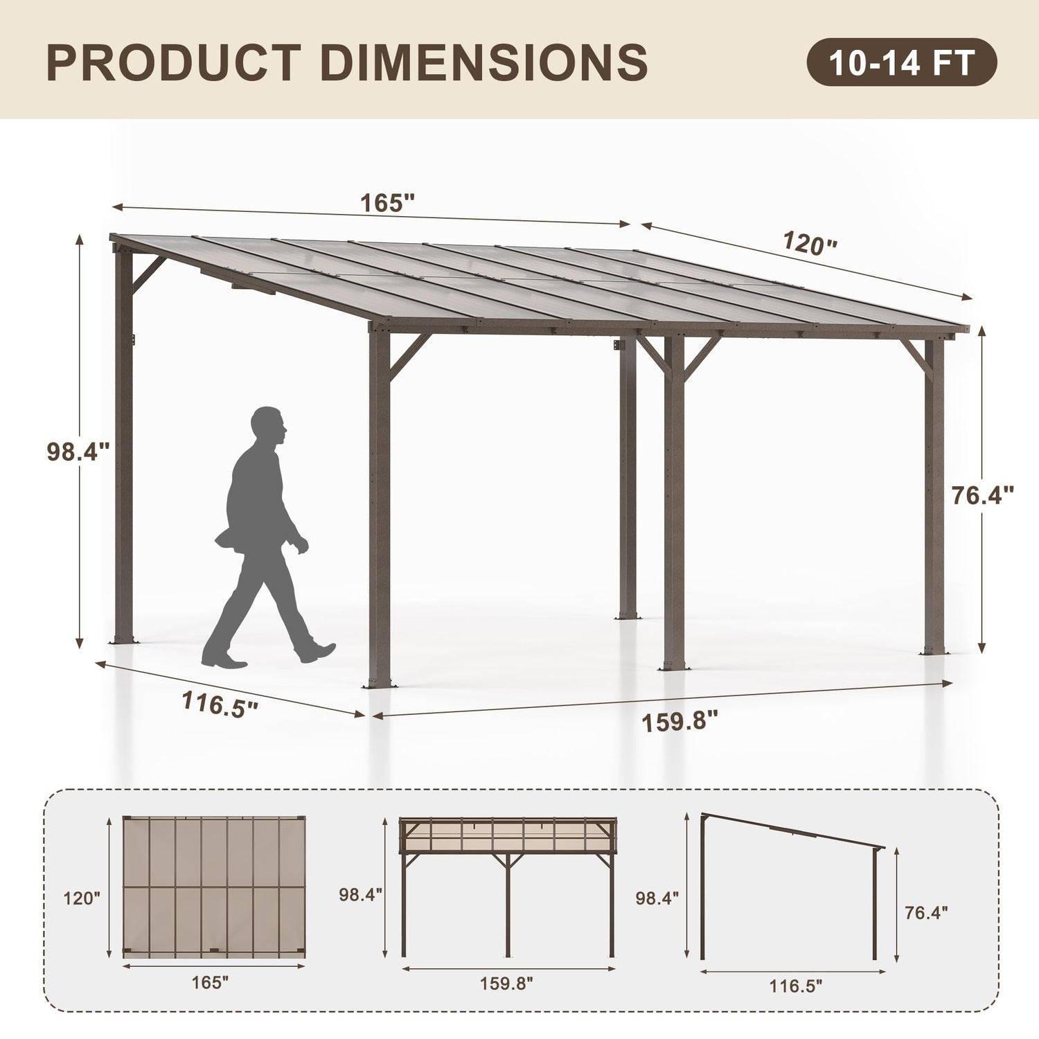 VIWAT 10' x 14' Gazebo, Outdoor Gazebos on Clearance with Aluminum Frame, Wall Mounted Gazebo & Pergola, Lean to Gazebo Awnings for Patio, Decks, Porch and Backyard