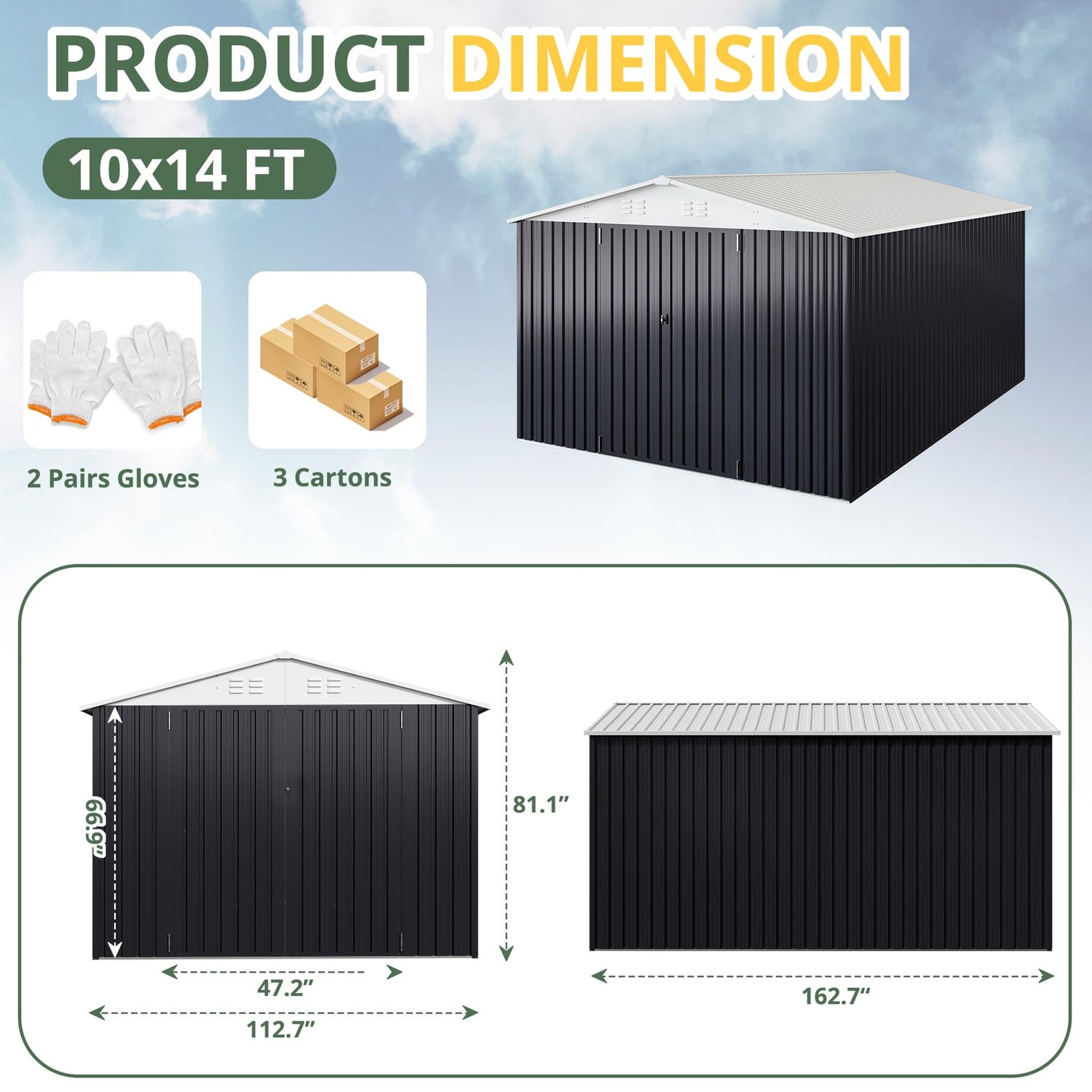 - 【Spacious Storage Solution】Measuring a generous 162.7"D x 112.7"W x 81.1"H, our shed offers ample space to house your gardening tools, equipment, and outdoor necessities without clutter.