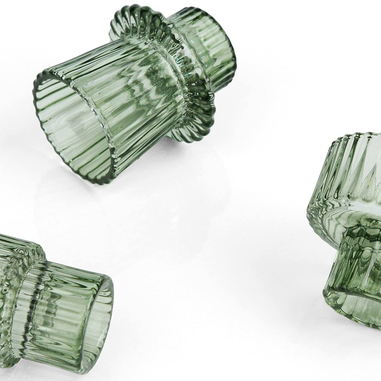Vixdonos Taper Glass Candlestick Holders Tealight Candle Holders for Table Centerpieces, Wedding Decor and Dinner Party (3 Pcs, Green)
