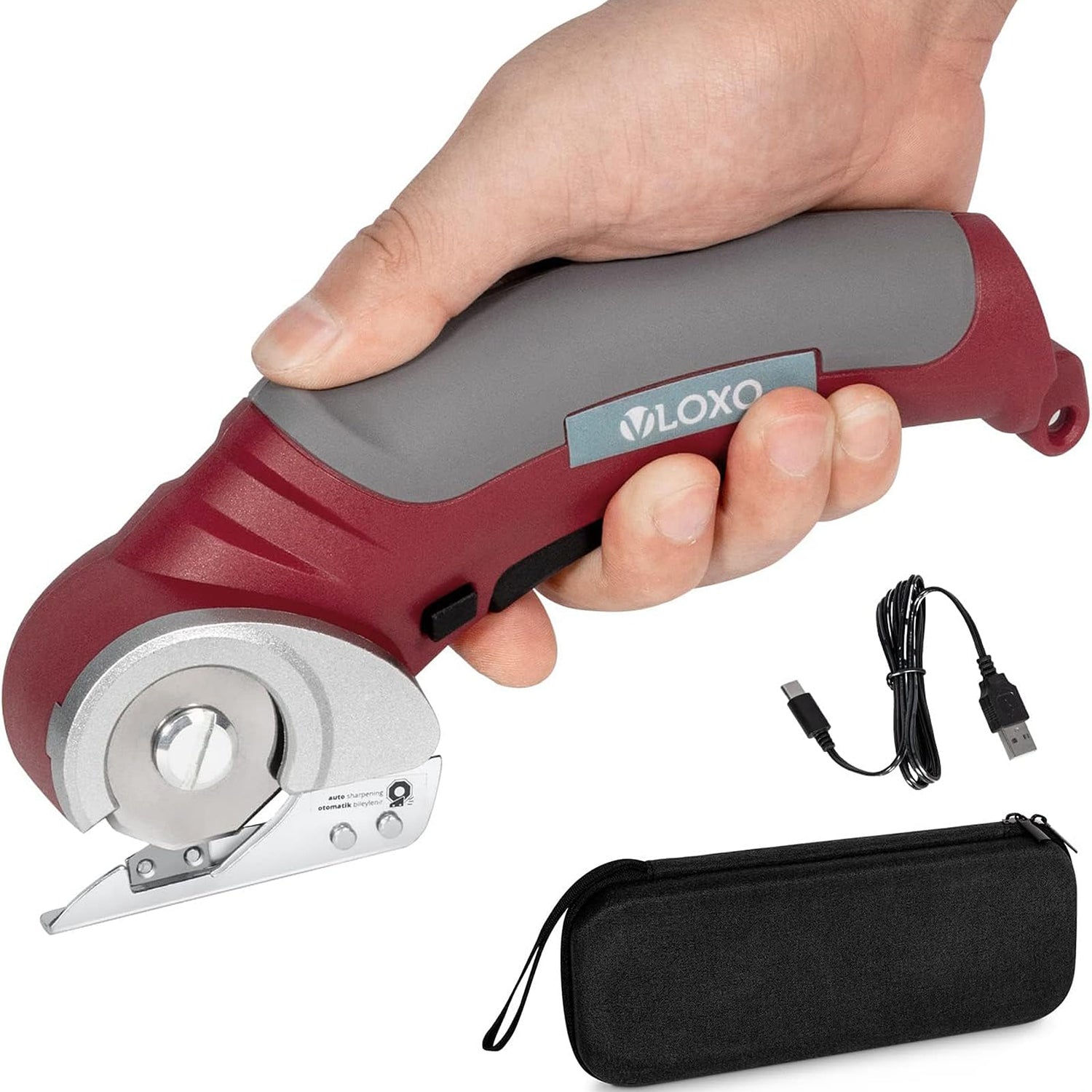 VLOXO Cordless Electric Scissors, Rotary Cutter for Fabric with Safety Lock, 4.2V Cardboard Cutter Multi-Cutting Tools, Rechargeable Powerful Fabric Cutter for Carpet Leather Felt with Storage Box