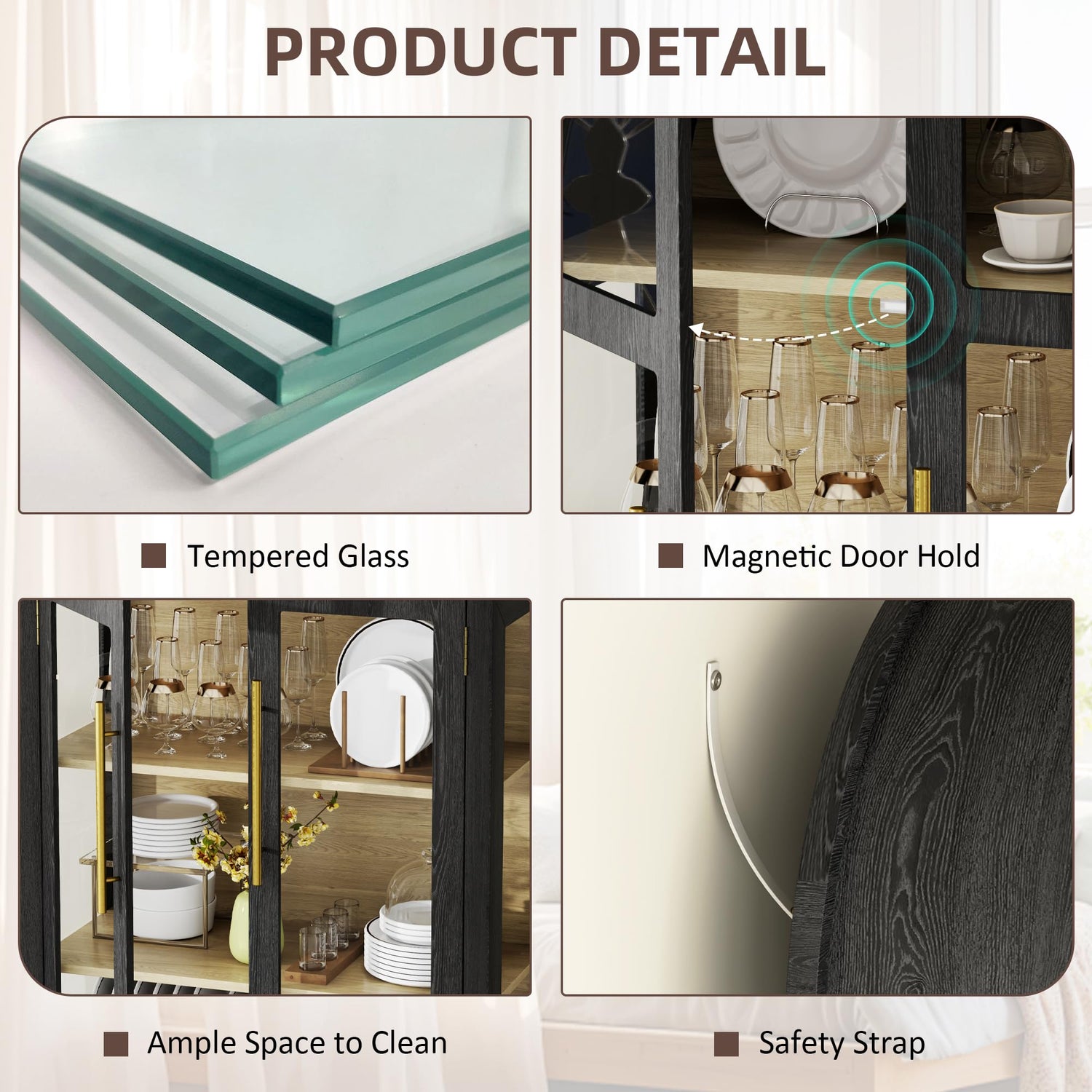- Stylish Glass Doors: Two tempered glass doors not only provide easy visibility but also let you display your favorite items while keeping them safe and dust-free, with clear acrylic side panels for improved visibility and durability