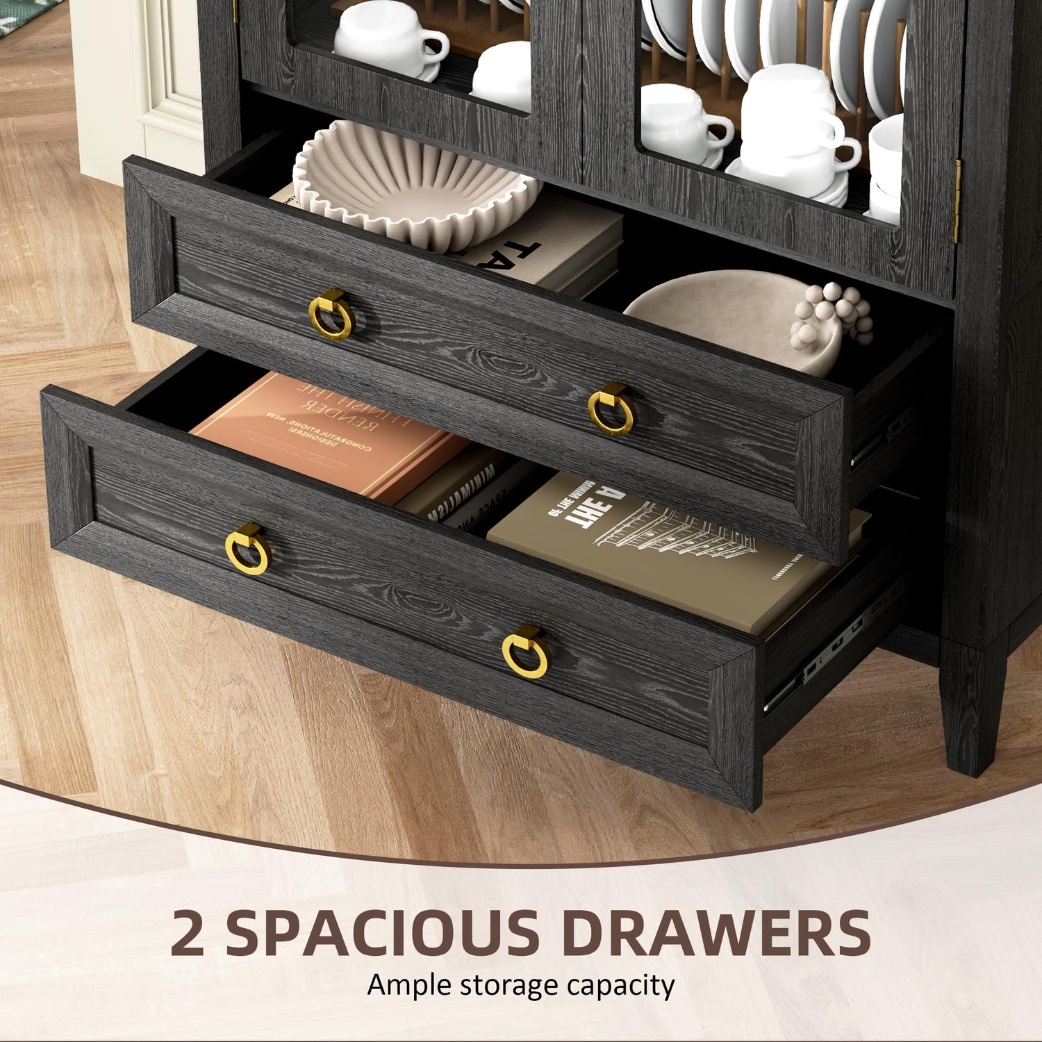 - Spacious Design: With dimensions of 31.5" W x 71" H x 15.7" D, includes 4 extra-wide shelves and 2 large drawers, providing ample space for display or storage, suitable for use as a storage cabinet, living room display, or office bookcase, combining practicality with aesthetic appeal