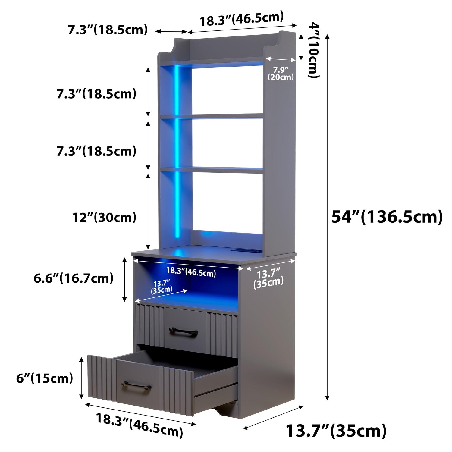 Overall dimensions of the nightstand measure 18.3 inches in length, 13.7 inches in width, and 54 inches in height, providing ample room to accommodate all your essentials stylishly.