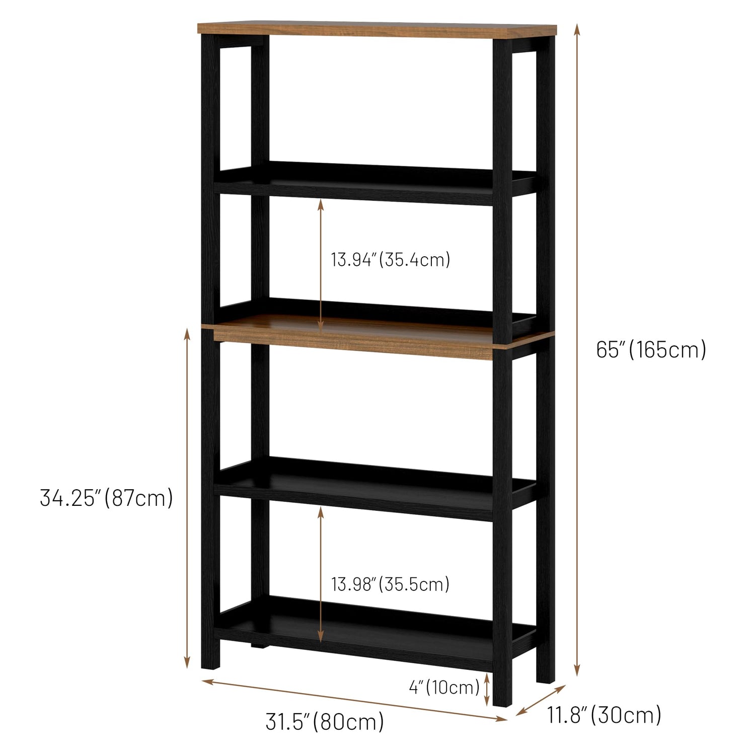- 【Large Storage Capacity】This freestanding book shelf can enhance your home decor while keeping books organized. Each tier can hold up about 100LBS, which can safely store or display your essentials and ornaments with anti-tipping. Overall size: 65" H X 11.8" W X 31.5" L, the compartment height is about 14"