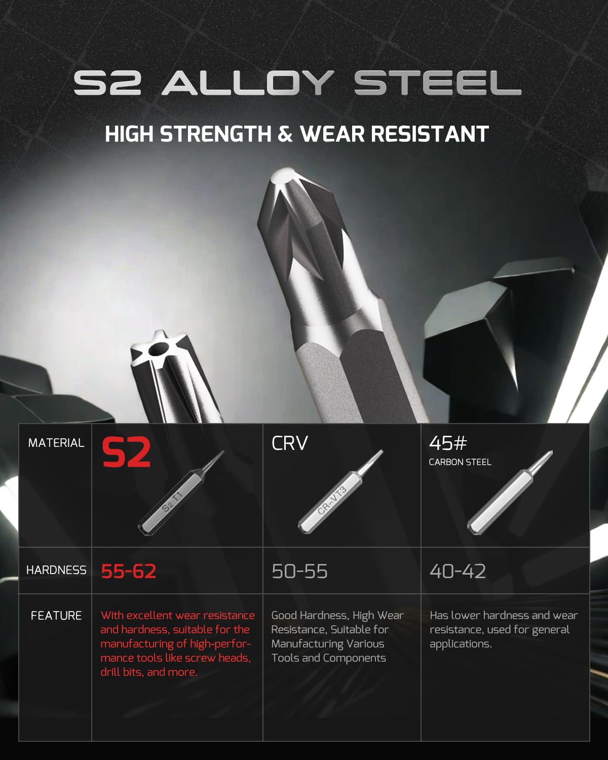 • 【High-Quality, Durable Bits】Crafted from premium S2 steel with HRC62+ hardness, these heat-treated and CNC-machined bits ensure superior durability and precision. Magnetic tips provide secure handling of small screws, while spare bits for common types like Phillips, Slot, and Tri-point are included to keep your repairs uninterrupted