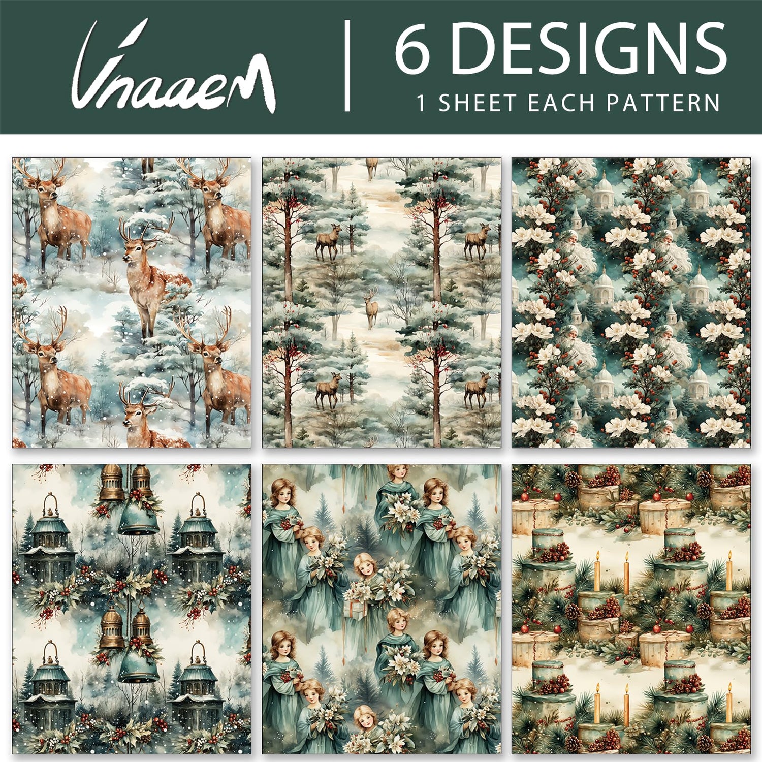 - Watercolor christmas Designs: Our wrapping paper features 6 vintage designs: including reindeer tree angel and forest patterns.These christmas gift wrap are limited edition and unique to make it easy to add a personal touch to your present.