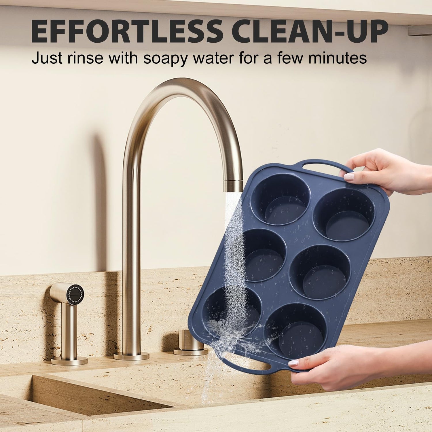 Vnray Jumbo Silicone Muffin Pan with Metal Frame, Non Stick Silicone Cupcake Pan with Handles 6 Cup, BPA Free Silicon Muffin Tin Tray Extra Large for baking, egg bites, Cupcake Mold Grey