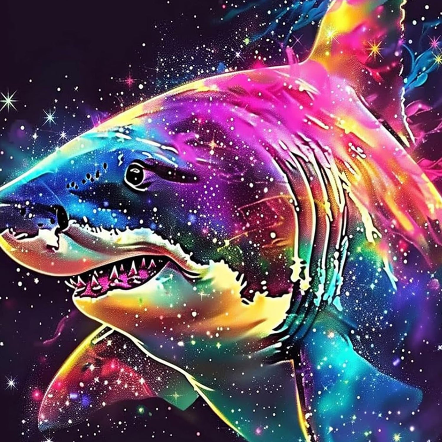 VNUIEHG Colorful Rainbow Shark DIY Paint by Numbers for Adults Sea Animals in Space DIY Oil Painting Acrylic Paint Painting Kits Canvas with Acrylic Paint Galaxy Animals Art 16x20 Inch
