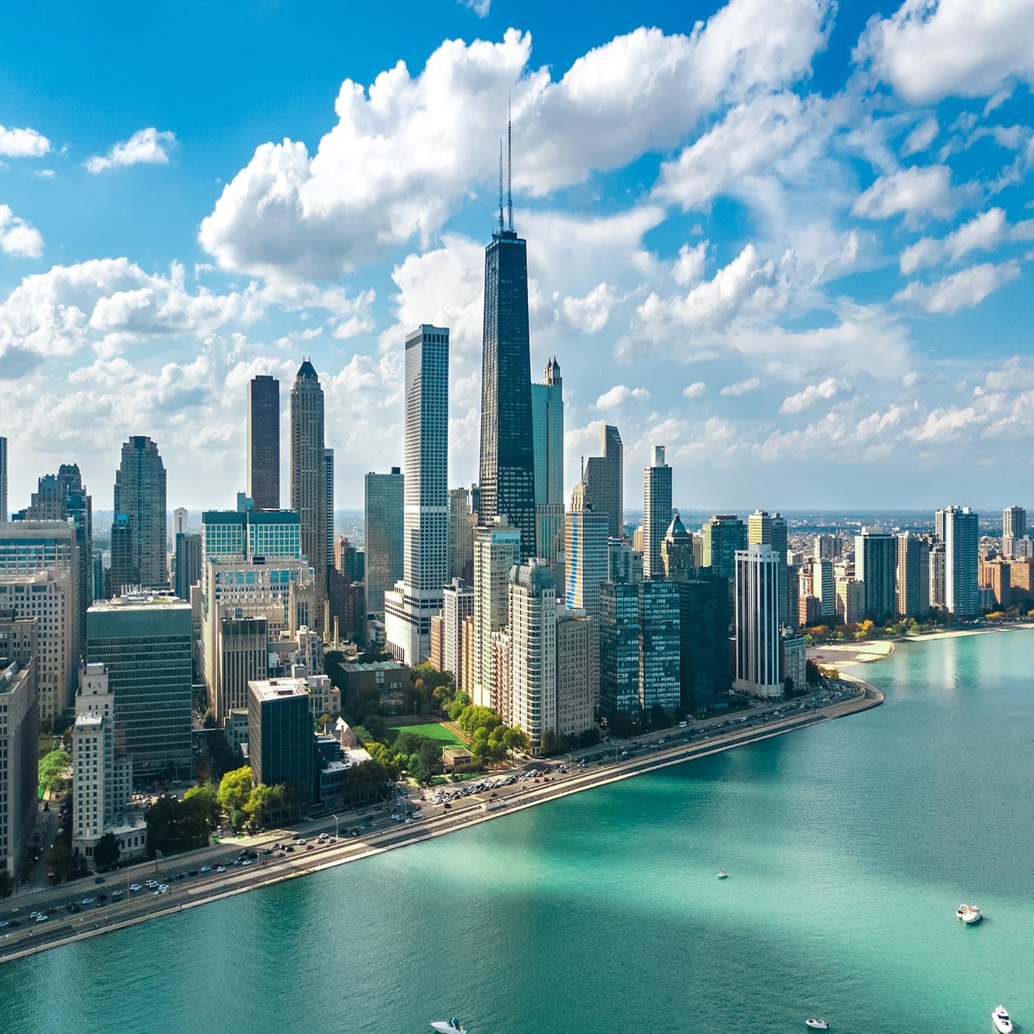 VNUIEHG DIY Digital Oil Painting Set Chicago Skyline Aerial Drone View from Above Lake Michigan and City of Paint by Numbers Kits for Adult Beginner Art Craft for Home Wall Decor 16"x20"