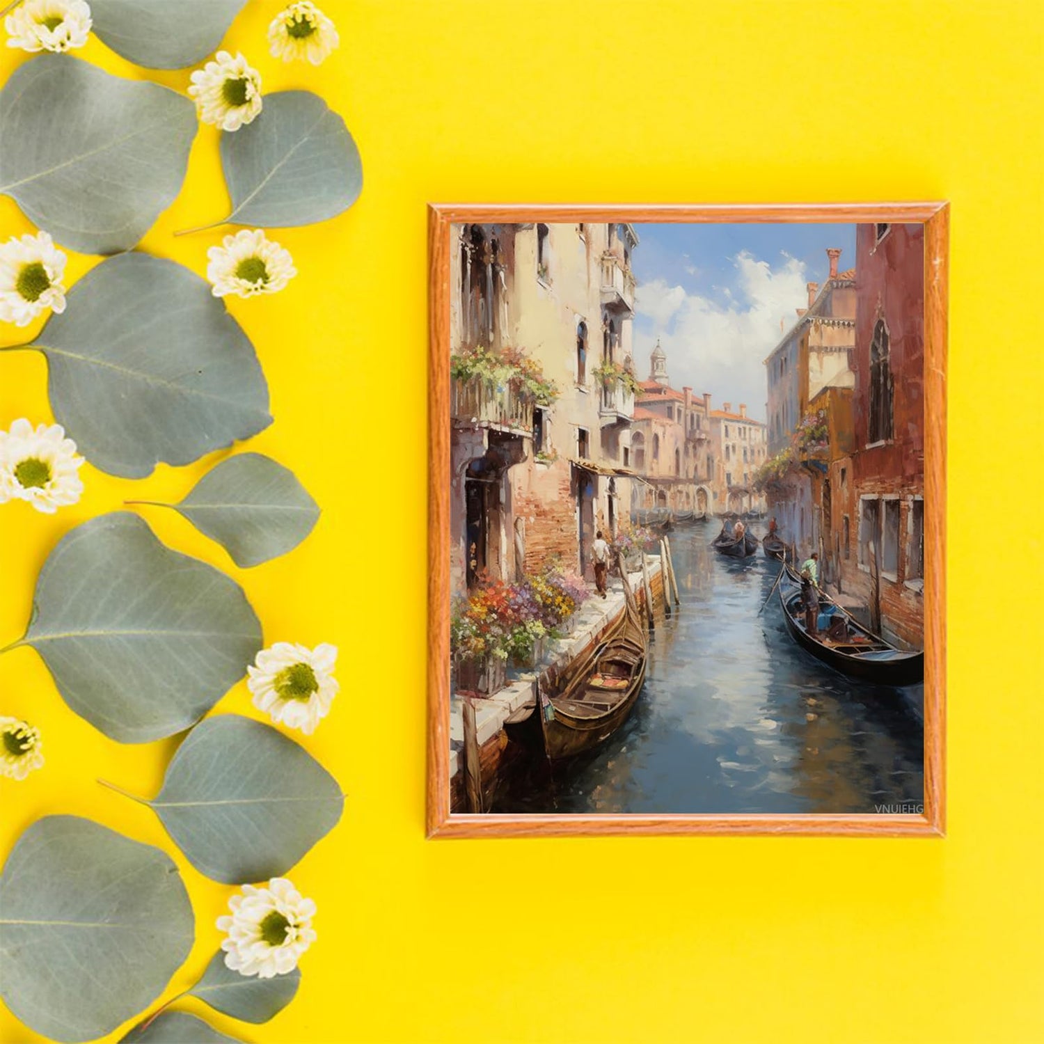 VNUIEHG DIY Paint by Numbers for Adults Beginner, Romantic Venice Water City, Adult Crafts Adults' Paint-by-Number Kits, Room Decor Gift for Birthday Festival (16x20 inch,No Frame)