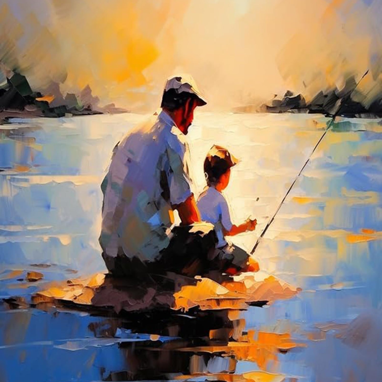 VNUIEHG DIY Paint by Numbers for Adults Father Fishing DIY Painting by Number Kits Oil Paint Drawing Canvas Home Decor Gift, 40x50cm Without Frame
