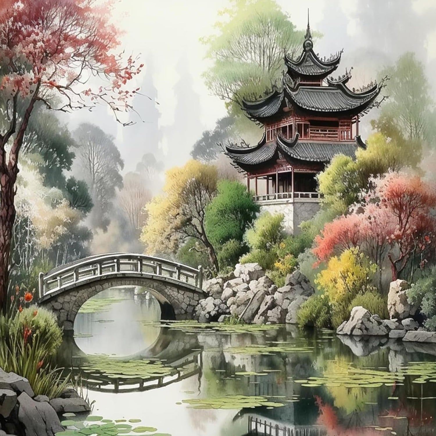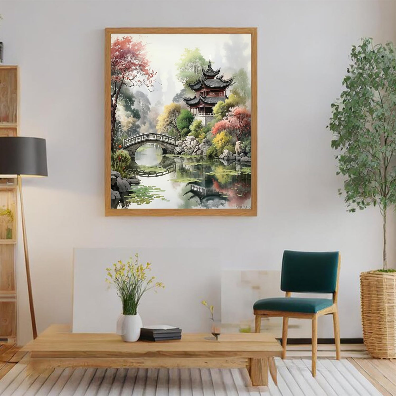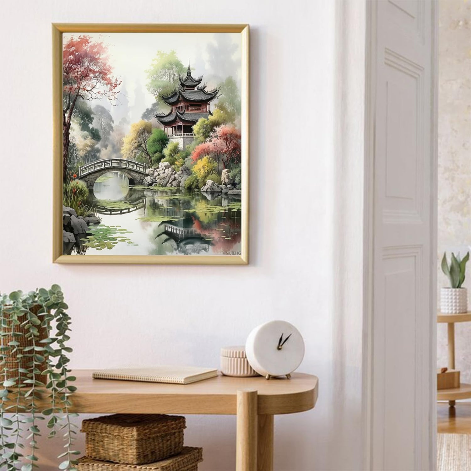 VNUIEHG Paint Your Passion Premium Paint-by-Numbers Kit for Artists, Chinese Traditional Landscape Garden, 40x50cm, Without Frame