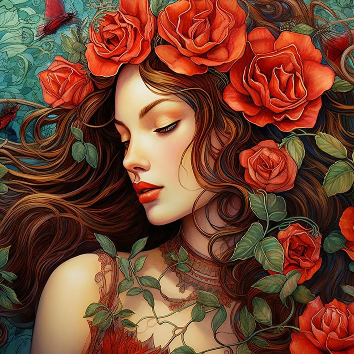 VNUIEHG Red Roses Paint by Numbers Kits 16x20 inch Canvas DIY Digital Oil Painting for Adults with Brushes and Acrylic Pigment, Flowers and Beautiful Women Picture for Home Decor Gift (Without Frame)