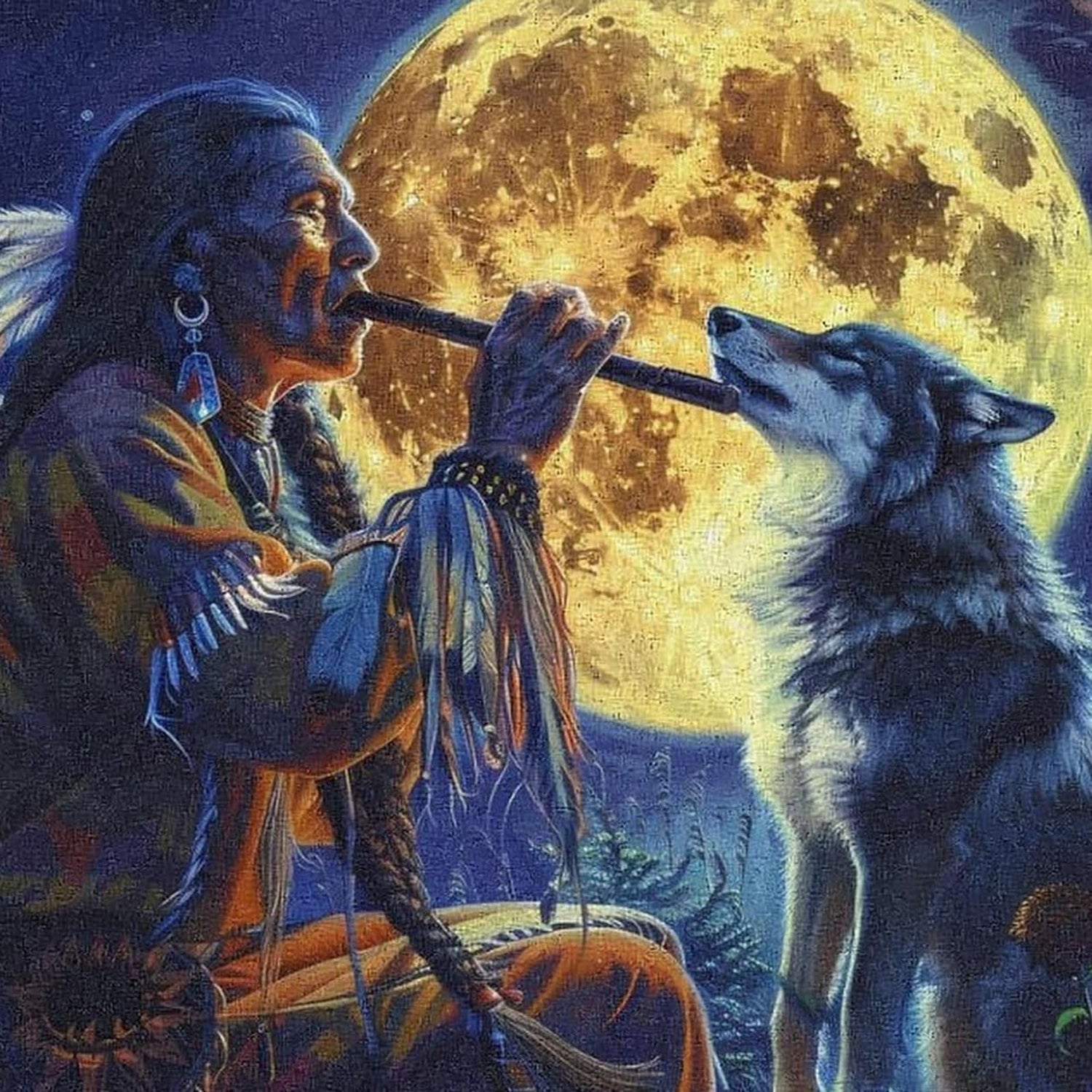 VNUIEHG Tribal Wolf Song Native American Paint by Numbers for Adults Beginner DIY Painting by Numbers Kits Wall Art for Home Office Decor 16x20in