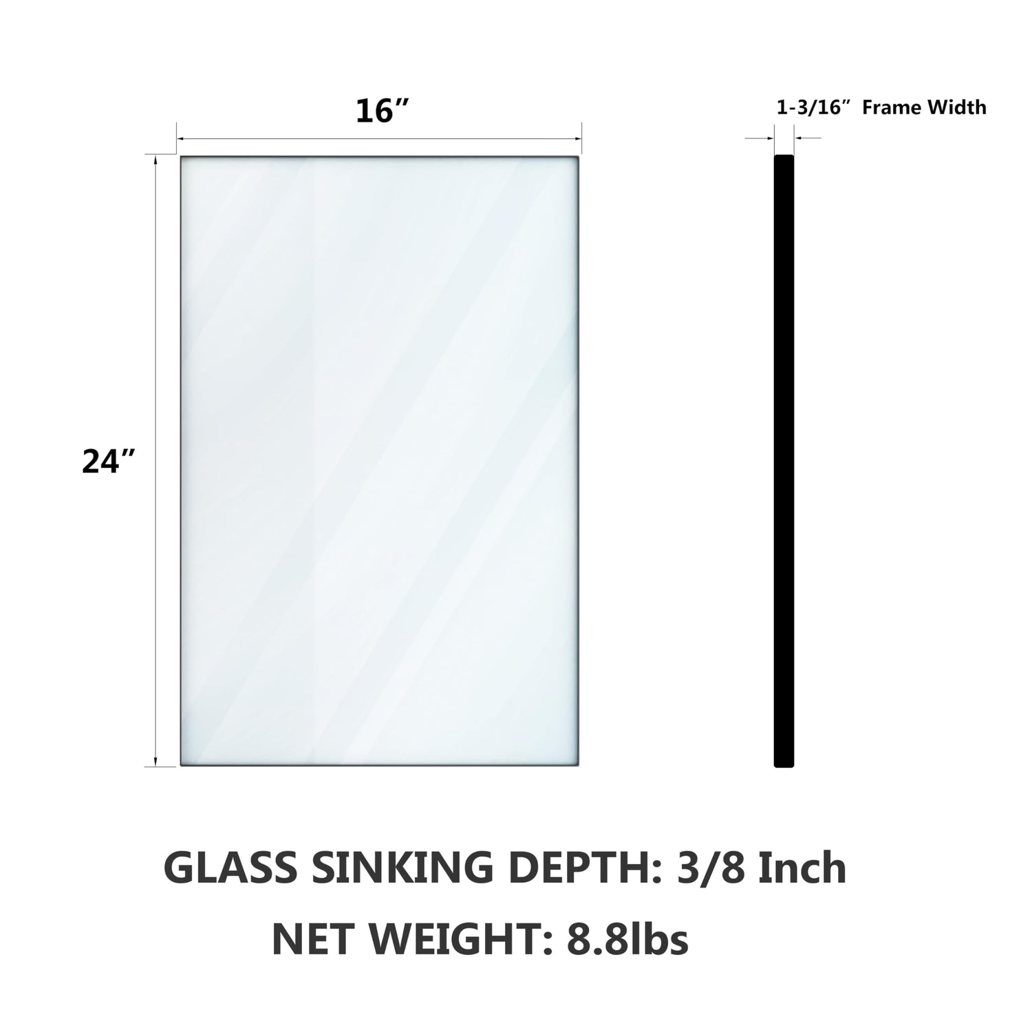 - The Mirror's outside frame measures 16 x 24 inches, with a 0.6-inch insert depth, perfect to put over a bathroom vanity or any space you need to add a touch of style