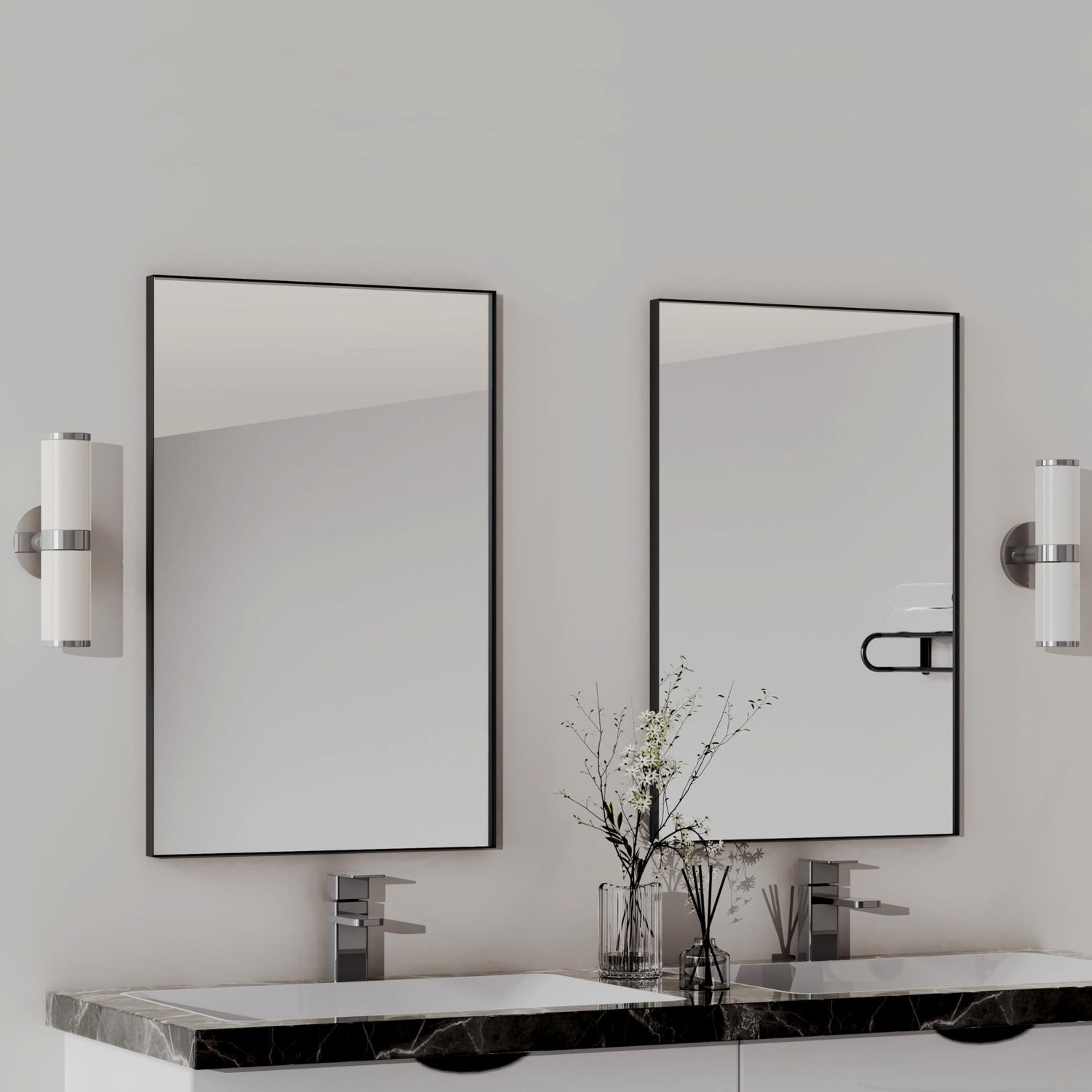 VocalStar 16 x 24 Inch Black Bathroom Mirror for Wall, Square Corner Rectangle Black Metal Framed Bathroom Vanity Mirror Modern Farmhouse, 1/4-inch Shatterproof Glass | Ultra-Flush Hanging