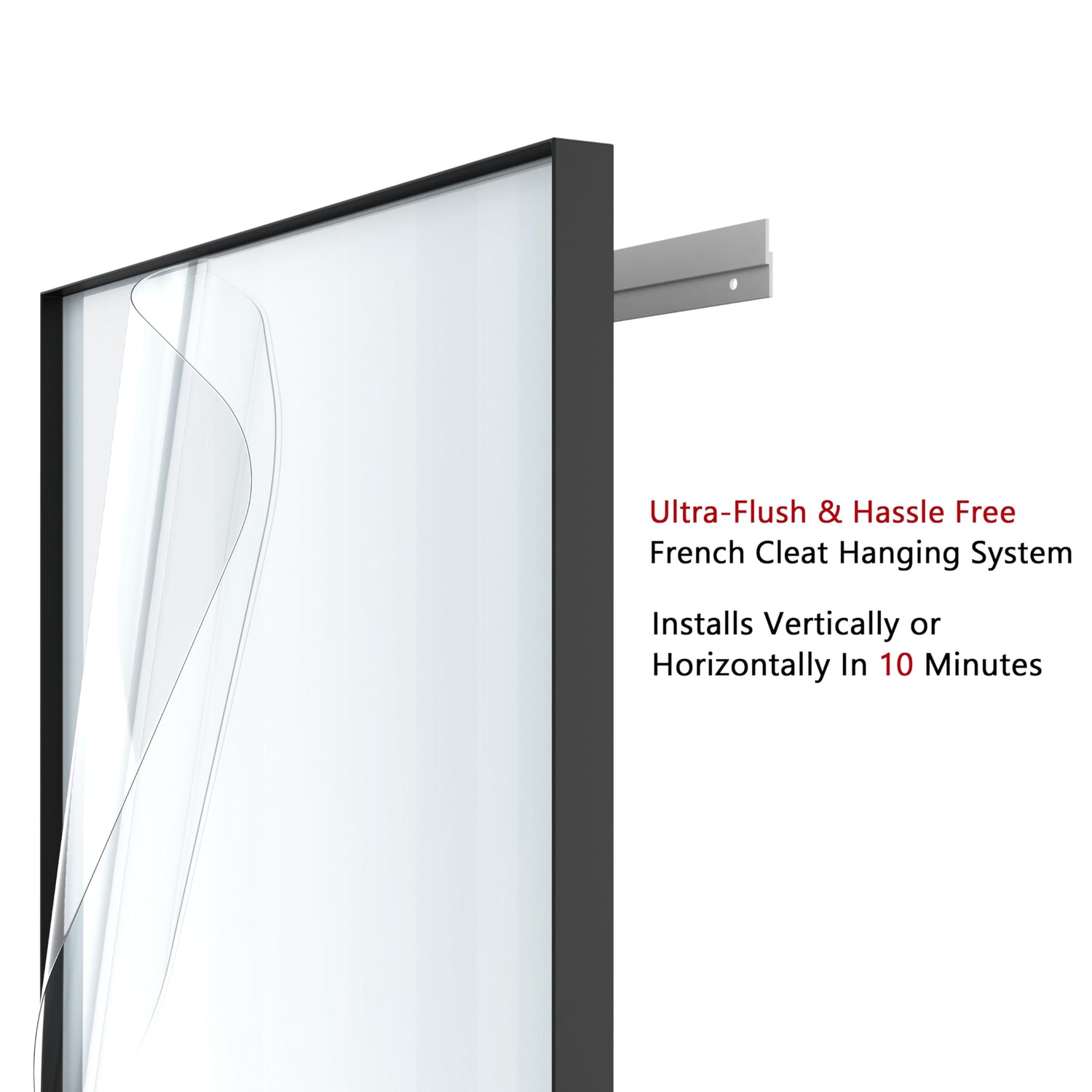- Easy to Hang- Includes Ultra-Flush Z-bracket Hanging System with durable hardware, for a secure and effortless vertical or horizontal installation in less than 10 minutes