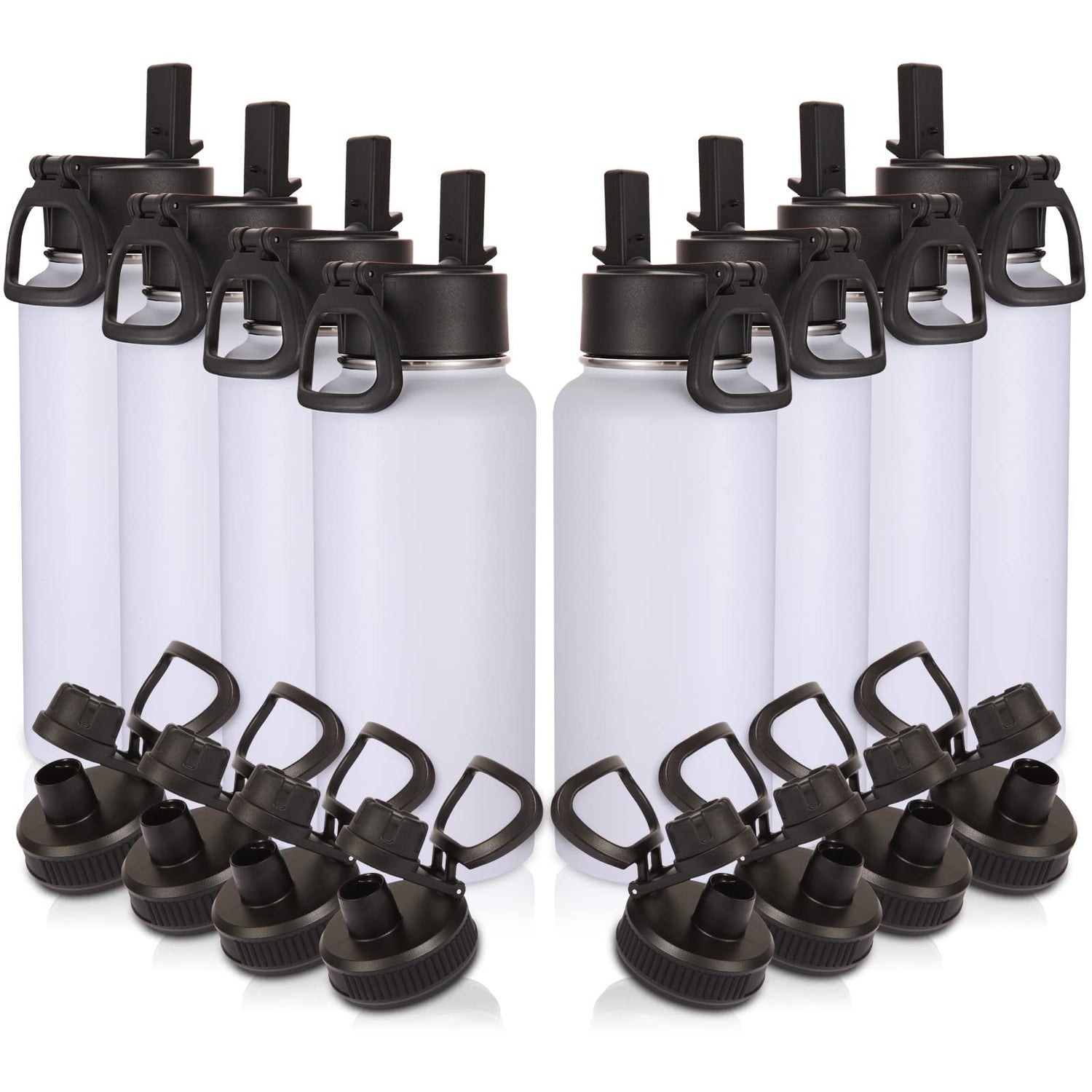 Volhoply 32oz Insulated Water Bottles Bulk 8 Pack with Straw Lid & Spout Lid,Stainless Steel Sports Water Bottle,Double Wall Vacuum Thermos,Leakproof Wide Mouth Metal Flask for Hiking,Camping(White,8)